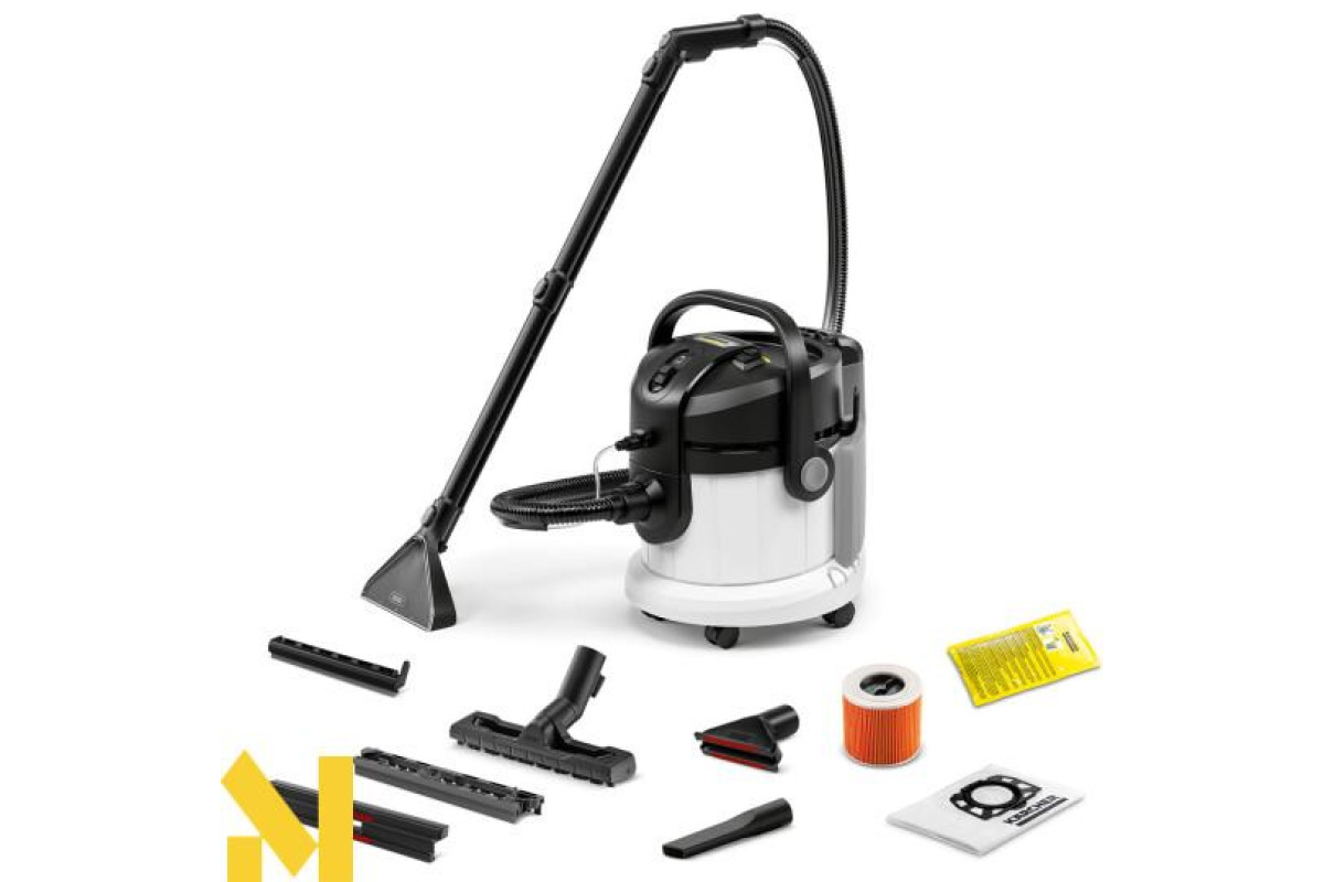 Висока ефективність прибирання в поєднанні з ергономічністю і багатофункціональністю: мийний пилосос SE 4, що вирізняється привабливим дизайном, забезпечує ретельне, глибоке очищення різноманітних текстильних поверхонь. Чудовий результат чищення гарантує випробувана технологія екстракції: мийний розчин, що готується шляхом додавання у водопровідну воду пропонованого Karcher засобу для чищення килимів RM 519, під тиском розбризкується на текстильну поверхню і відразу ж збирається разом із відокремлюваними забрудненнями. Такий апарат чудово підходить для сімей, алергіків і власників домашніх тварин. Це багатофункціональне рішення "3 в 1" можна також використовувати як повноцінний господарський пилосос. Великий (4 л) бак для чистої води, виготовлений із прозорого ударостійкого матеріалу, знімається для легкого наповнення і спустошення. Забруднена вода, що всмоктується, збирається в сміттєзбірник апарата. Дугоподібна ручка "3 в 1" дає змогу зручно переносити мийний пилосос, а також швидко від'єднувати та приєднувати сміттєзбірник і легко спустошувати його. Приналежності, що входять до комплекту постачання, можна акуратно зберігати на корпусі апарата. Можливість легкого очищення мийного пилососа після закінчення прибирання сприяє продовженню терміну його служби.