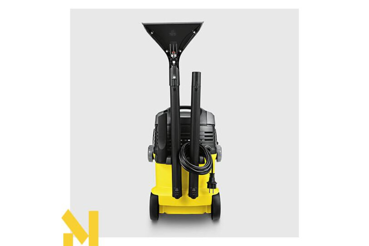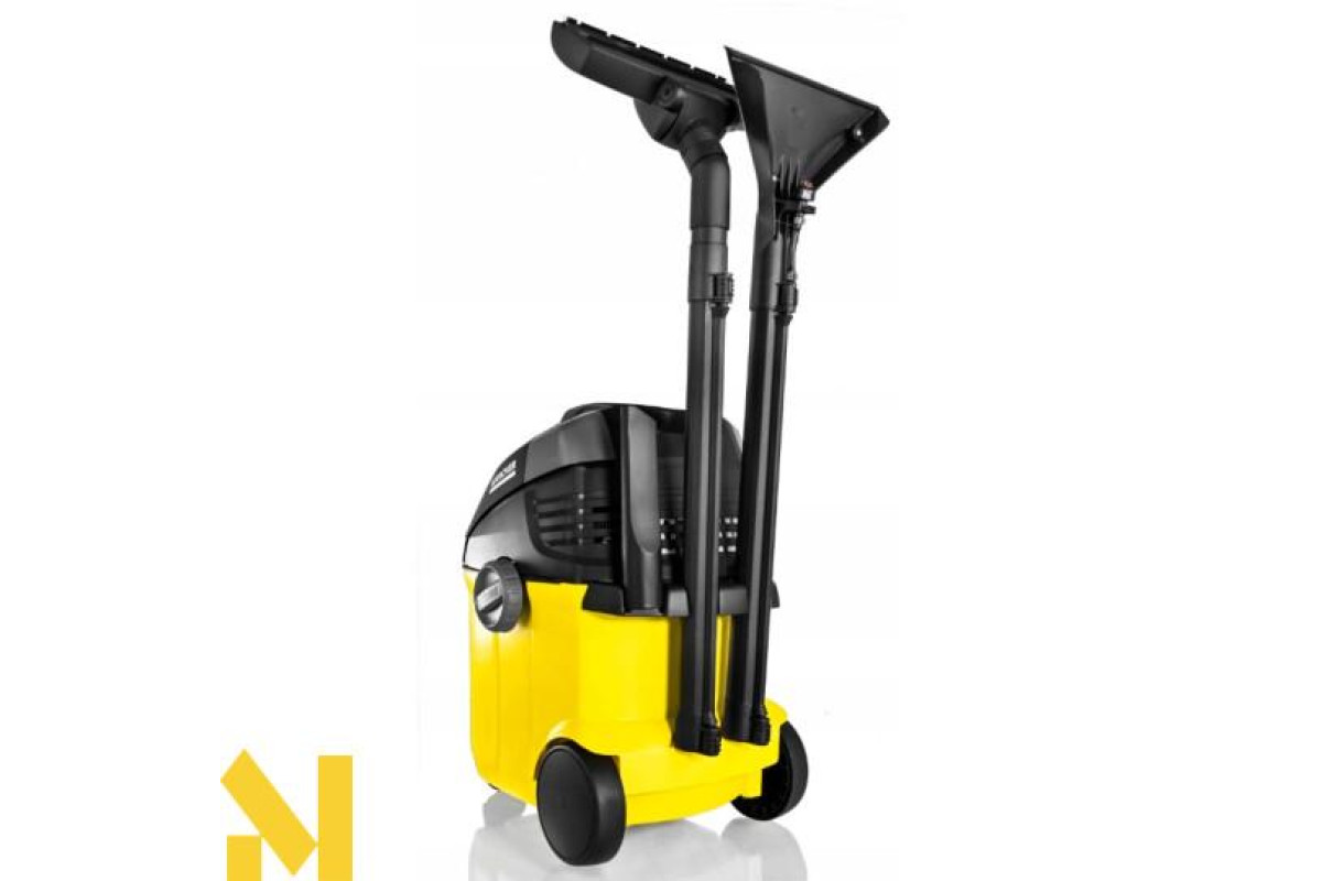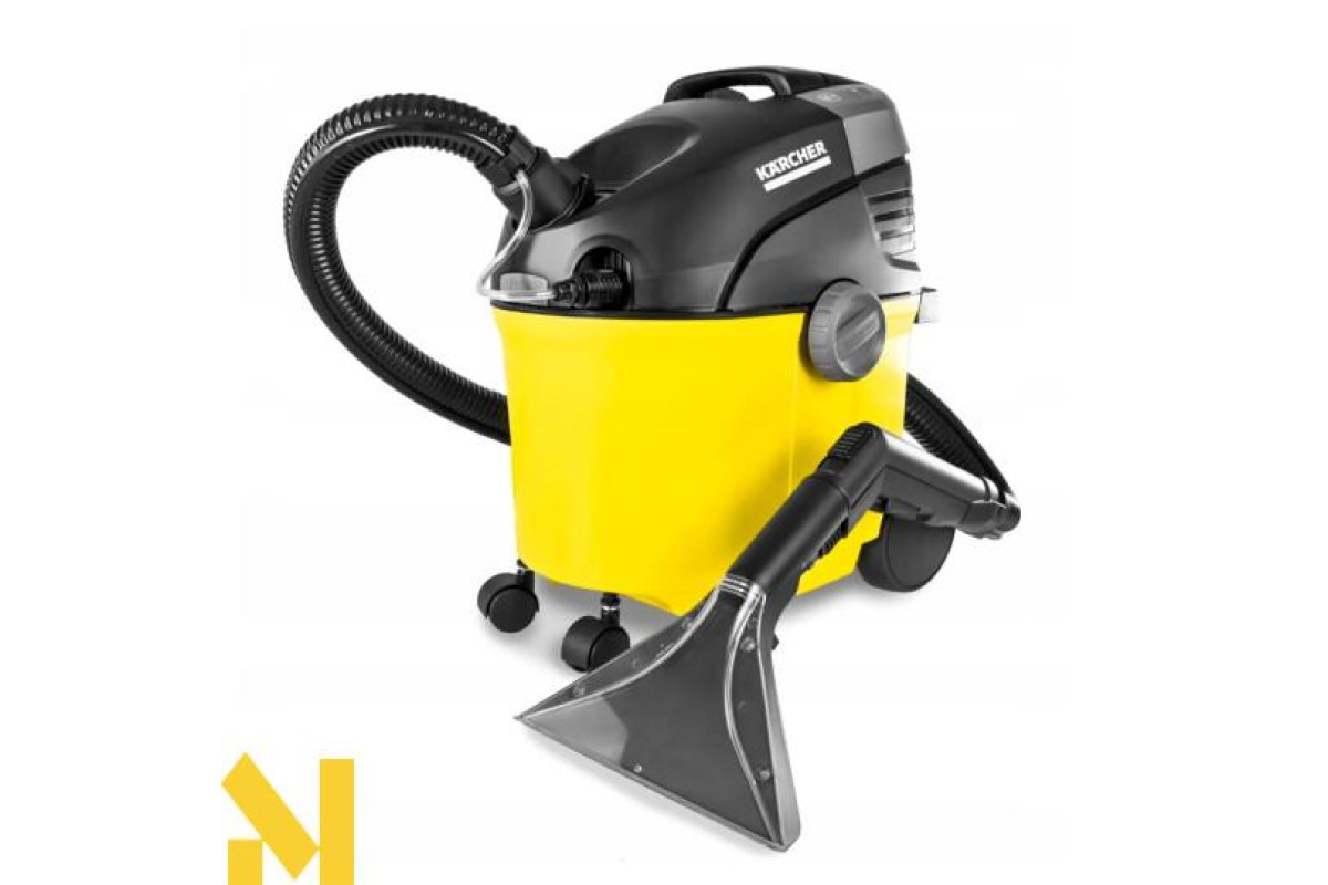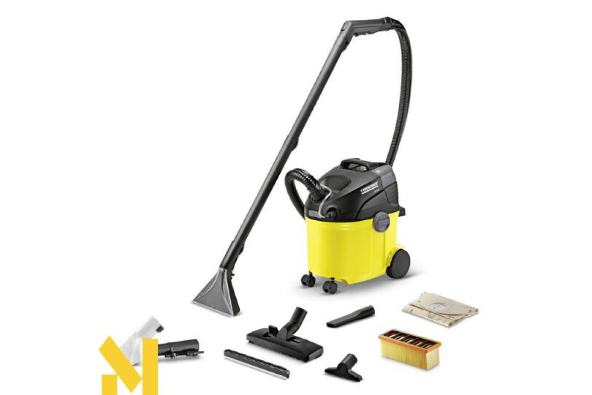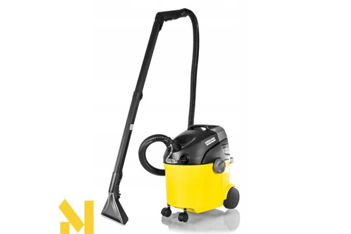 Миючий пилосос SE 5.100 призначений для очищення килимових покриттів, м'яких меблів, матраців, текстильної оббивки стін і автомобільних сидінь на всю глибину волокон. Пилосос подає воду і відразу ж її всмоктує, збираючи при цьому як вологе сміття, так і сухе. Завдяки спеціальній конструкції і широкому асортименту аксесуарів пилосос може використовуватися як для сухого, так і для вологого прибирання, гарантуючи ретельну чистку і комфортну роботу оператора. Апарат має велика місткість баків - 4 л для чистої води (яка подається через насадку) і 4 л для брудної води (яку зібрали разом з брудом). Оснащений пласким складчастим фільтром. Витрата повітря - 70 л / с і розрядження - 210 мбар забезпечують чудову силу всмоктування. У комплекті, крім стандартних аксесуарів (подовжувальні трубки, насадка для вологого прибирання, насадка для сухого прибирання, щілинна насадка, насадка для меблів) додатково входить миючий засіб.