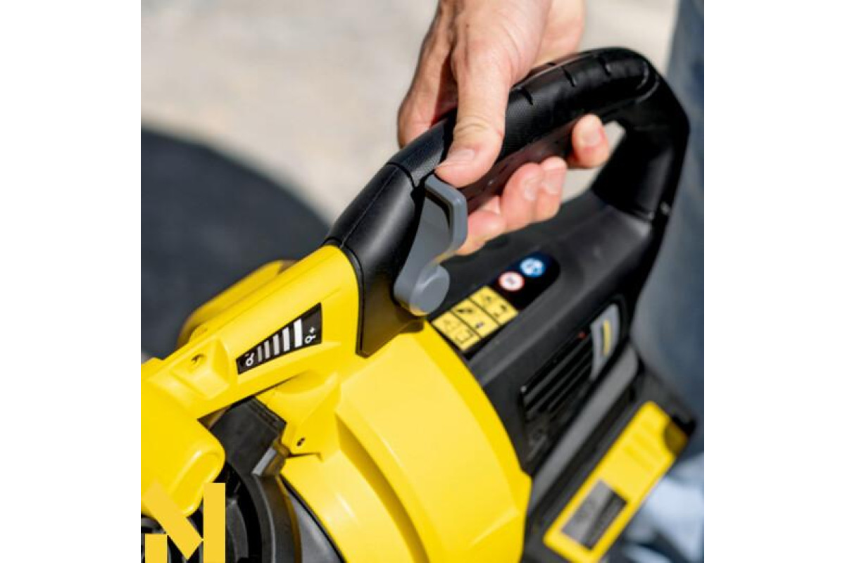 Мокре листя, свіжоскошена трава і обрізки кущів міцно пристають до грунту, і видалити їх можна лише з великими труднощами - особливо з кутів і інших важкодоступних місць. Для швидкого вирішення цього завдання потрібна ціла бригада - або одна-єдина акумуляторна повітродувка з функцією пилососа Karcher BLV 36-240 Battery. Цей потужний інструмент, що створює повітряний потік до 770 м³/год, легко справляється навіть з вологими садовими відходами. При цьому інтенсивність повітряного потоку плавно регулюється шляхом зміни частоти обертання, що дозволяє вибирати режим, оптимальний для виконання конкретної роботи, і економити заряд акумулятора. Інструмент оснащений перемикачем для вибору режимів здування або всмоктування, які можуть також використовуватися спільно. У режимі всмоктування подрібнююча зелена маса збирається в мішок великих розмірів. Тривале виконання робіт без перевтоми забезпечується ергономічною другою рукояткою для оптимального розподілу ваги і знімними напрямними роликами. Крім того, знімне виконання всмоктуючої і видувної труб дозволяє зняти будь-яку трубу, яка не використовується для виконання роботи. Акумулятор не входить в комплект поставки інструменту.