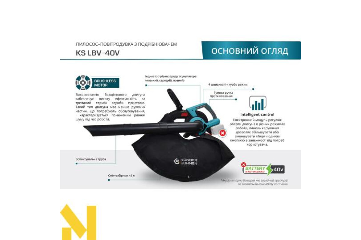 Документація Пилосос-повітродувка садова акумуляторна Konner&Sohnen KS LBV-40V (без АКБ та ЗП)