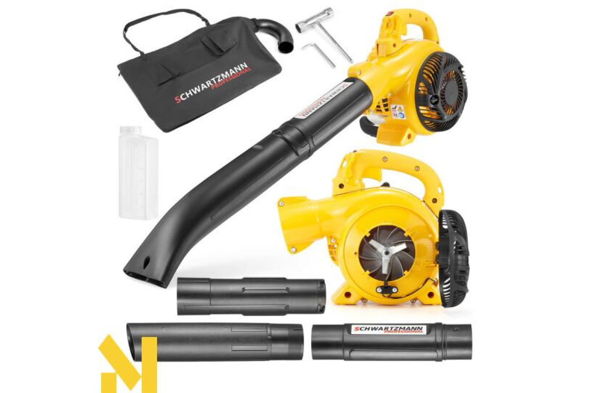 Садовий пилосос-повітродувка SCHWARTZMANN SCH-BV3500- високопродуктивна садова повітродувка побутового класу, призначена для легких і середніх навантажень під час прибирання садових ділянок від листя і сміття. Інструмент обладнано 2-тактним бензиновим двигуном з потужністю 3 кВт (4,1 к.с), завдяки якому на виході повітродувка видає 730 м³/год повітря зі швидкістю 370 км/год. Як паливо використовується суміш бензину з моторним мастилом у пропорції 40:1 (на 1 л бензину 25 мл мастила).