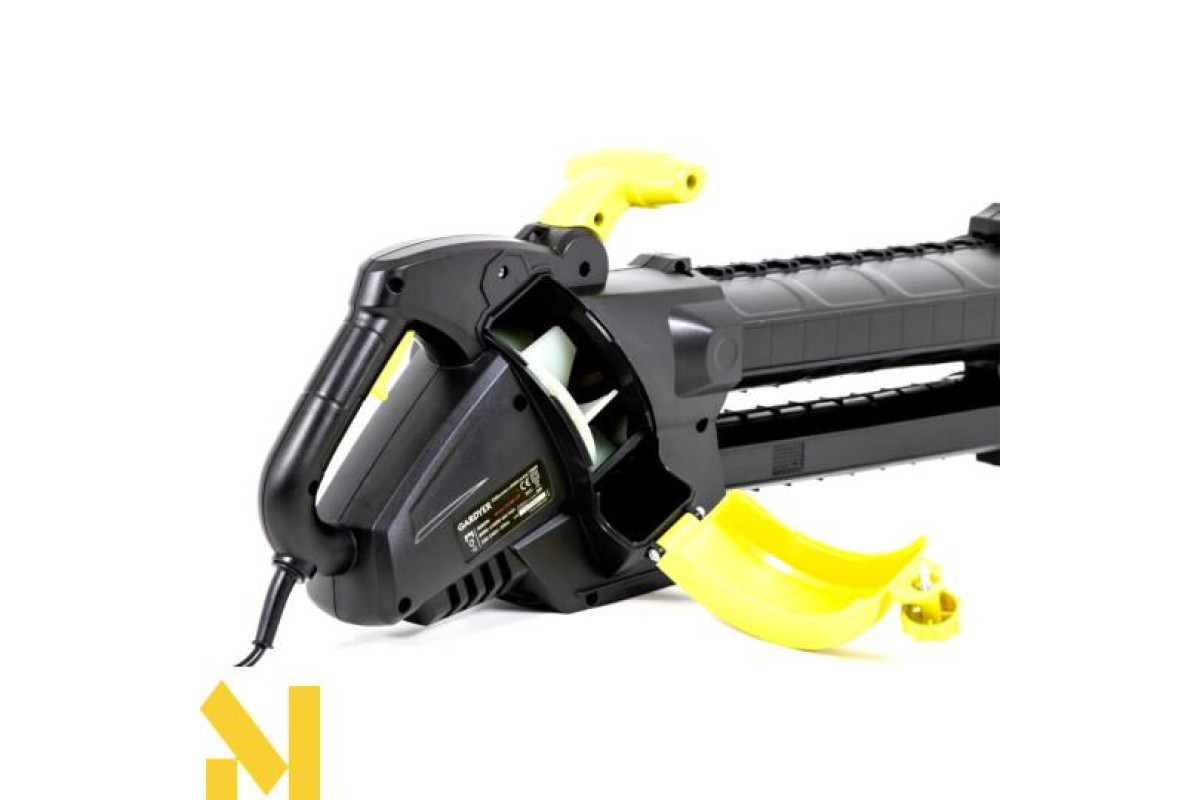 Особливість цього пилососа полягає у можливості регулювання швидкості повітряного потоку в діапазоні від 100 до 275 км/год. Він також оснащений подрібнювальним лезом з функцією подрібнення 10:1, що дозволяє ефективно обробляти як дрібні елементи, так і велике листя. З містким мішком об'ємом 45 літрів ви зможете працювати тривалий час без перерви. Прозорий корпус спрощує догляд за вентилятором, а встановлені колеса, легка вага (3 кілограми) і телескопічна трубка роблять роботу в саду комфортною і без болю у спині. Gardyer V800 робить прибирання в саду легким і приємним заняттям.