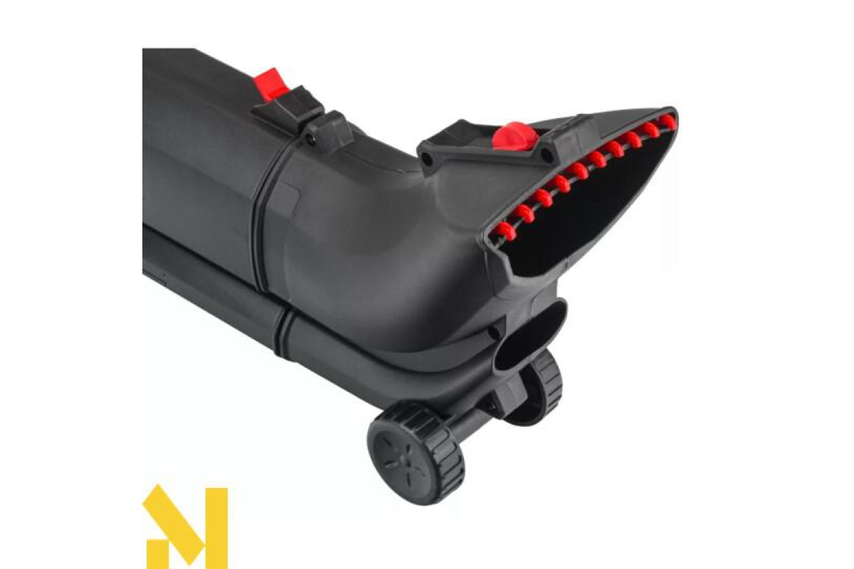 Колеса, встановлені на виході повітря, знімають навантаження з рук під час здування або всмоктування листя.