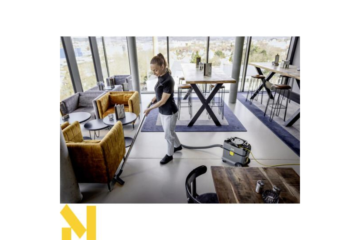 Ідеальне рішення для денного прибирання. Знижене шумове навантаження навіть уночі. Знижує ризики для здоров’я, такі як стрес і ушкодження слуху.Професійний пилосос сухого прибирання T 15/1: Ергономічний, компактний та зручний дизайн