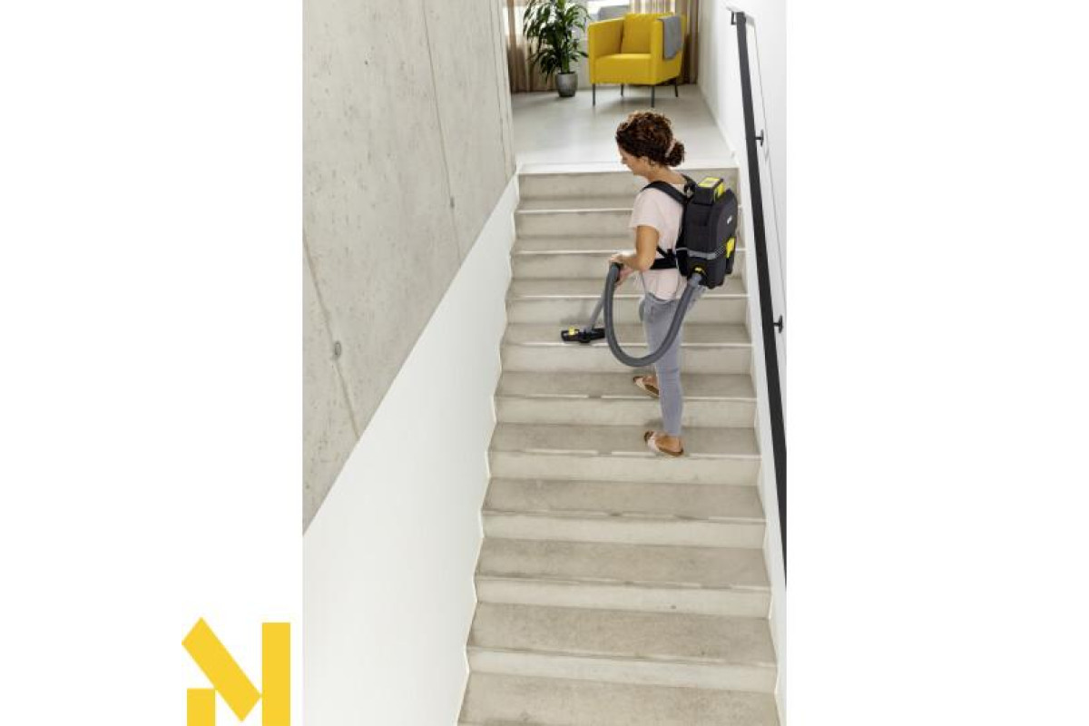 Надлегкий, потужний і бездротовий: ранцевий пилосос BVL 3/1 Bp - перший апарат такого типу, що завдяки використанню експандованого поліпропілену важить лише 4,5 кг (маса, яка припадає на спину) і водночас вирізняється особливою конструктивною міцністю та довговічністю. Він значно полегшує прибирання на сходових майданчиках та в інших тісних приміщеннях, зокрема в школах, на виробничих підприємствах чи в житлових будинках. Апарат з 3-літровим сміттєзбірником має високу силу всмоктування, а потужний акумулятор Kärcher Battery Power забезпечує тривалу роботу від одного заряду. Ергономічна конструкція ранця виключає перевтому оператора. Завдяки практичному пульту управління, встановленому на поясному ремені, пилосос BVL 3/1 Bp дає змогу оператору легко керувати всіма функціями. Безщітковий електродвигун має високу зносостійкість. На додаток до стандартної комплектації пропонуються й опціональні компоненти, зокрема фільтр HEPA 14. При замовленні апарату в цій версії слід враховувати, що необхідні для його експлуатації акумулятор Kärcher Battery Power і зарядний пристрій слід купувати окремо.