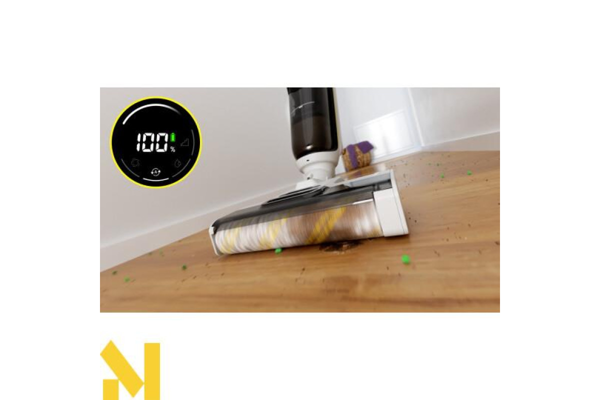 Потужний двигун BLDC і міцний акумулятор із часом роботи до 45 хвилин забезпечують безперервне прибирання площі до 200 квадратних метрів. Крім того, пристрій оснащений 3,2-дюймовим дисплеєм Vision!Clean, функцією автоматичного запуску/зупинки та ефективною функцією самоочищення з термосушінням Thermo!Dry, а також двома пральними роликами Pure!Roll для максимальної зручності — без контакту з брудом.