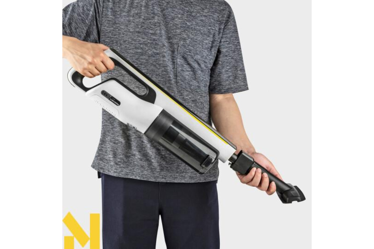Вертикальний пилосос «2 в 1» Karcher VC 4s Cordless вражає своєю продуманою конструкцією. Вузький корпус, мала вага і відсутність кабелю дозволяють вирішувати найрізноманітніші завдання збирання практично в будь-яких приміщеннях. Продумана конструкція вимикача і подвійний рукоятки забезпечує миттєве перетворення звичайного вертикального пилососа в практичний ручної апарат. Високошвидкісний безщітковий двигун, мультициклонна система з фільтром НEPA 12, розвиваюча постійну силу всмоктування на рівні 15000 Па, і велика насадка для підлоги з електроприводом гарантують чудові результати збирання. При цьому в економічному режимі прибирання від одного заряду може тривати до 60 хвилин - цього достатньо, щоб навести чистоту практично в будь-якому будинку. Після прибирання зібране сміття викидається дуже легко - і так само легко здійснюється заряд акумулятора апарата, що встановлюється на базовій станції. Вона входить в комплект поставки, як і дві насадки - для м'яких меблів і щілинна.
