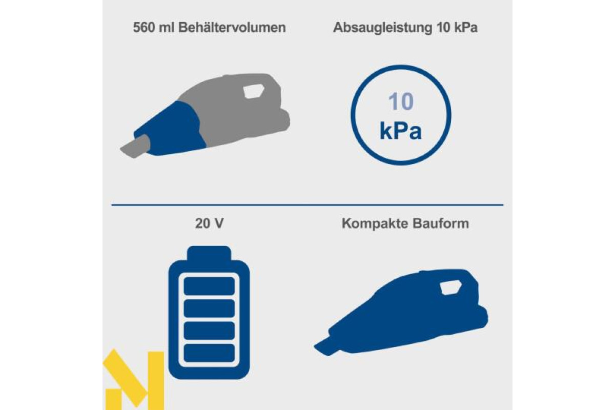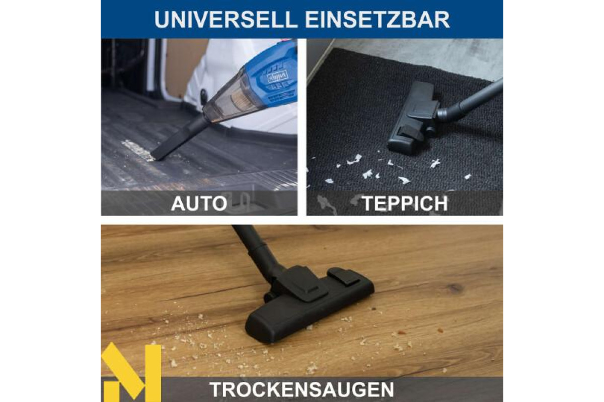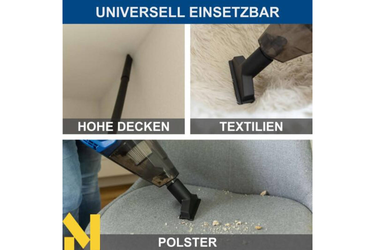 Бездротовий ручний пилосос Scheppach C-HVC150-X завжди під рукою для видалення бруду або крихт з диванів, столів, килимів або автомобільних сидінь. Різні насадки, що входять до комплекту, забезпечують універсальне використання цього зручного пилососа. Завдяки подовжувальним трубкам та практичній насадці для підлоги, C-HVC150-X також можна використовувати для очищення підлоги. Насадка для м’яких меблів дозволяє швидко та ефективно пилососити м’які меблі та тканини. Щілинна насадка також дозволяє легко очищати важкодоступні місця. Оскільки пилосос Scheppach IXES серії 20 вольт, усі акумулятори та зарядні пристрої системи можна комбінувати з ним. Акумулятор та зарядний пристрій продаються окремо. C-HVC150-X постачається зі щілинною насадкою, насадкою для м’яких меблів, насадкою для підлоги та трьома пластиковими подовжувальними трубками.