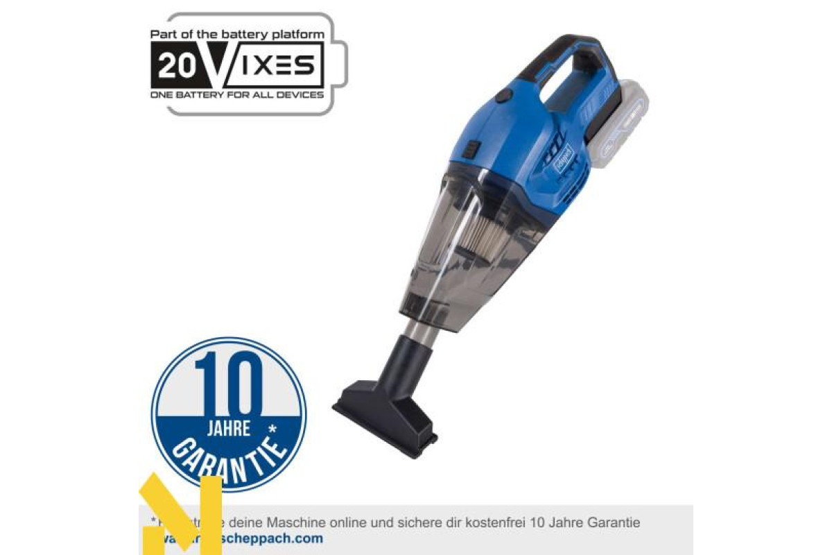 Бездротова робота з 20-вольтовою серією Scheppach IXES – усі акумулятори та зарядні пристрої системної серії можна поєднувати з бездротовим ручним пилососом