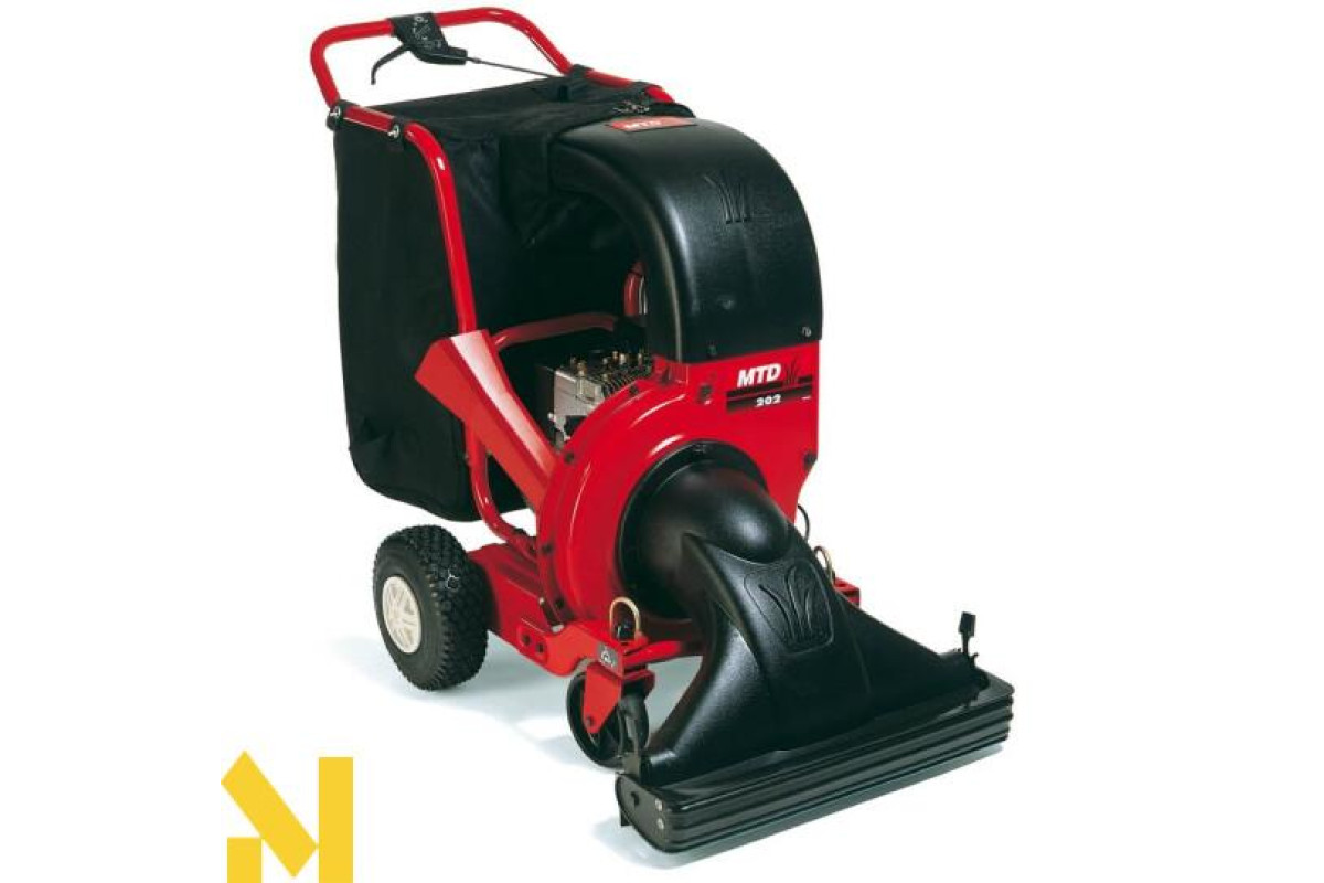 Садовий пилосос бензиновий MTD 202 OHV відноситься до професійного класу садової техніки. Має самохідний тип переміщення і дозволяє швидко прибирати листя, гілки та інший рослинний сміття з ділянки. Може використовуватися на великих за площею територій (в парках, скверах, стадіонах і т.д.). Садовий пилосос MTD 202 OHV має ланцюговий привід трансмісії і оснащений надійним чотиритактним двигуном Briggs & Stratton, потужність якого становить 3,7 кВт. Паливний бак об'ємом 3 літри забезпечує тривалу роботу на одній заправці. 202 OHV не тільки збирає сміття, а й подрібнює його в співвідношенні 10: 1. Подрібнювач обладнаний системою гострих ножів, що обертаються із загартованої сталі, здатних утилізувати гілки діаметром до 5 см. Перший рівень молотильних ножів докладний великі гілки, а другий перетворює їх на друзки. Така система дозволяє переробляти навіть пластикові пляшки. Для подрібнення довгих гілок встановлено окремий жолоб. Весь подрібнений сміття потрапляє в сміттєзбірник, обсяг якого перевищує 100 літрів. Важіль управління вмиканням приводу знаходиться на рукоятці, що дозволяє швидко регулювати і вимикати подрібнювач. Широка площа захоплення (60 см) дозволяє швидше збирати сміття. Заборник можна легко регулювати по висоті. Пневматичні колеса підвищують маневреність пилососа. Вільно обертаються передні колеса дозволяють легко міняти напрям руху і забезпечують стійкість агрегату на різної поверхні. Для роботи в важкодоступних місцях додатково можна придбати спеціальний шланг.