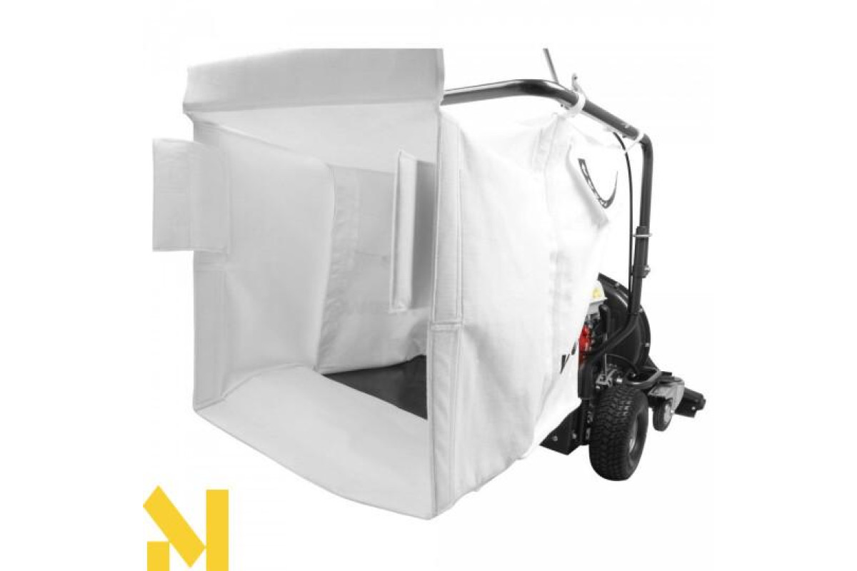 Великий брезентовий кошик об'ємом 240 літрів дозволяє зібрати велику кількість матеріалу, що значно скорочує час роботи. Додатково, полотно оснащене розсувною кришкою, яка змінює потік повітря через кошик. Повний контейнер можна швидко та зручно спорожнити, відстібнувши гачки на задній стінці та висипавши вміст без необхідності його розбирання.