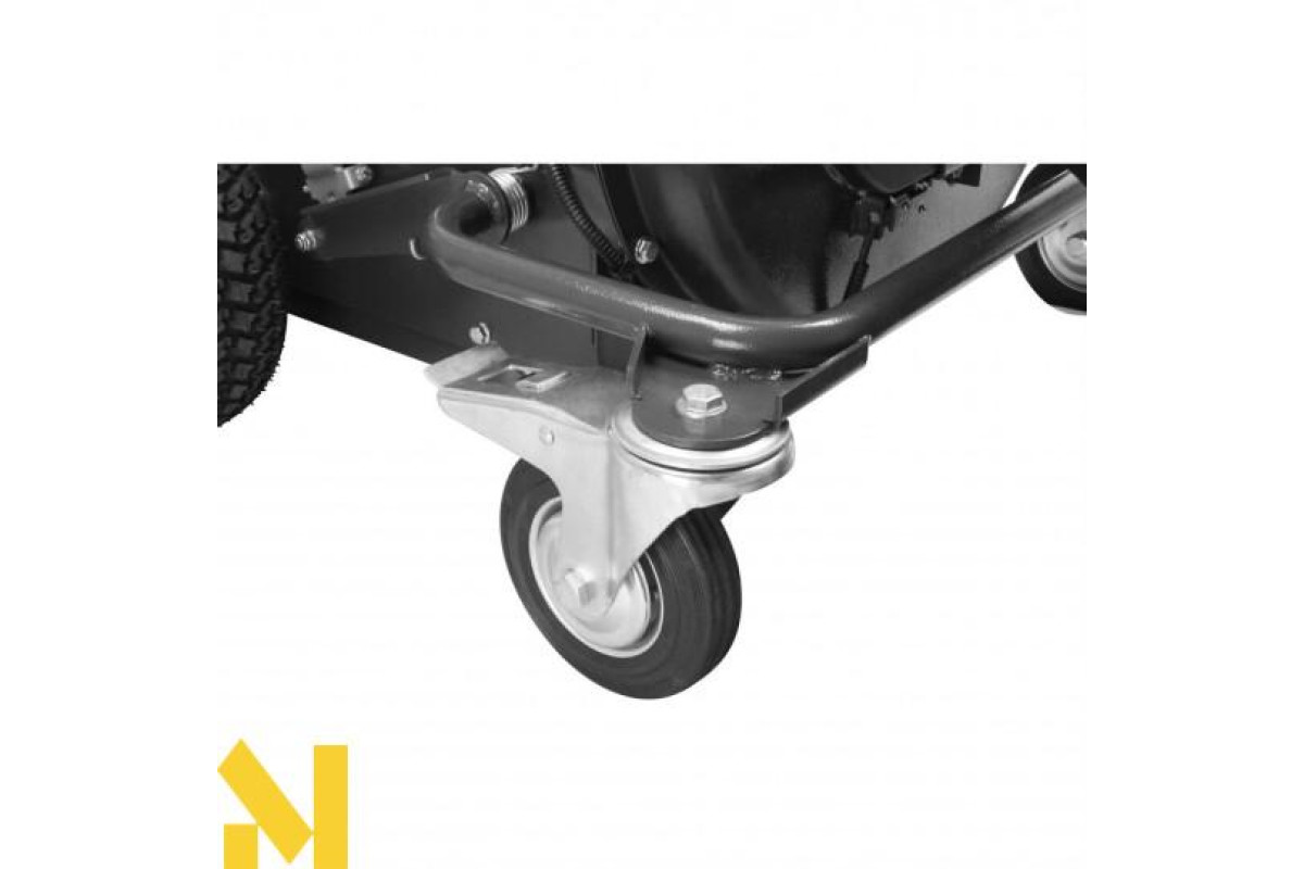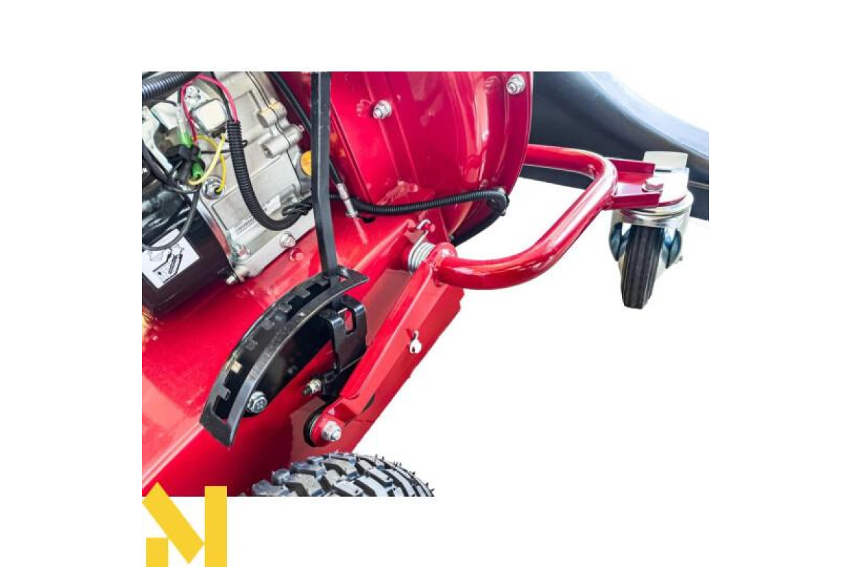 Привід передається на надувні задні колеса. Це дозволяє оператору легко долати схили, багнисту місцевість та нерівні поверхні, економлячи енергію. Спереду є два обертових колеса, завдяки яким пилосос стабільно рухається під час роботи та не нахиляється в сторони, що особливо важливо під час роботи на нерівних поверхнях. Робоча висота регулюється за допомогою важеля. Він дозволяє правильно регулювати висоту всмоктувальної воронки відносно землі. Маневрування в кутах та навколо дерев легке та комфортне. Пристрій оснащений чудовим, перевіреним двигуном Loncin G200F. Цей двигун надійний і, завдяки загальнодоступним запасним частинам, дешевий в експлуатації.