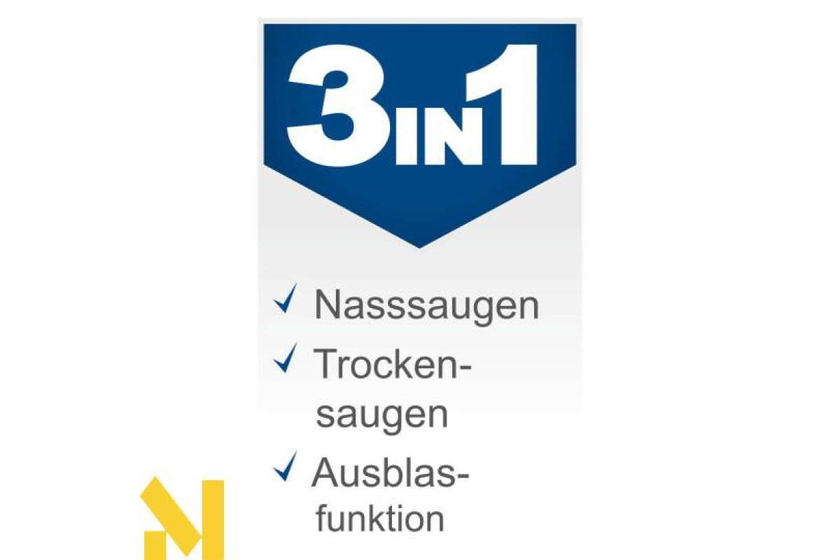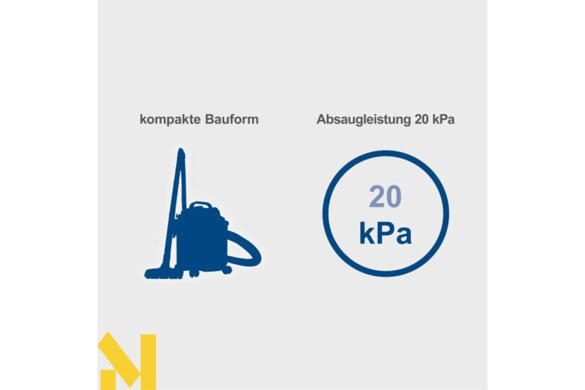 Компактний пилосос для вологого/сухого прибирання з тиском 20 кПа для вологого та сухого прибирання, а також видування повітря.