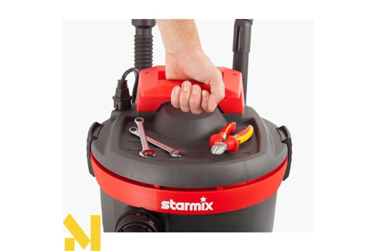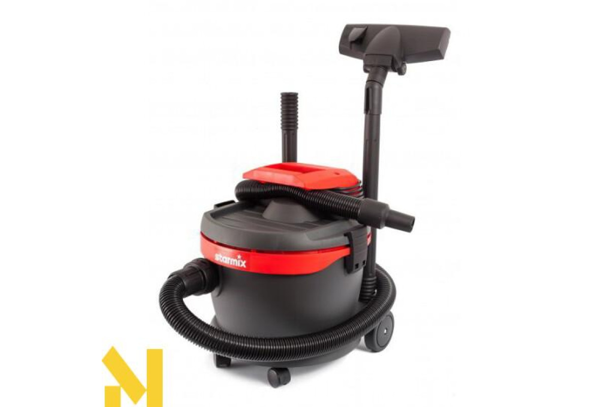 Пилосос Starmix AS 1220 HK (014081) - це універсальний пилосос для збору сухого сміття, пилу і рідкого бруду. Дана модель має компактні розміри, великий комплект стандартних аксесуарів і ефективну систему очищення повітря «Циклон», яка підтримує постійну потужність всмоктування пилососа і продовжує його термін служби. Такий пилосос застосовується для збору дрібної стружки, тирси, пилу, рідин, підходить для прибирання в майстернях, на промислових і будівельних об'єктах, в торгових і складських приміщеннях, офісних і торгових центрах, на автомийках і т.п.
