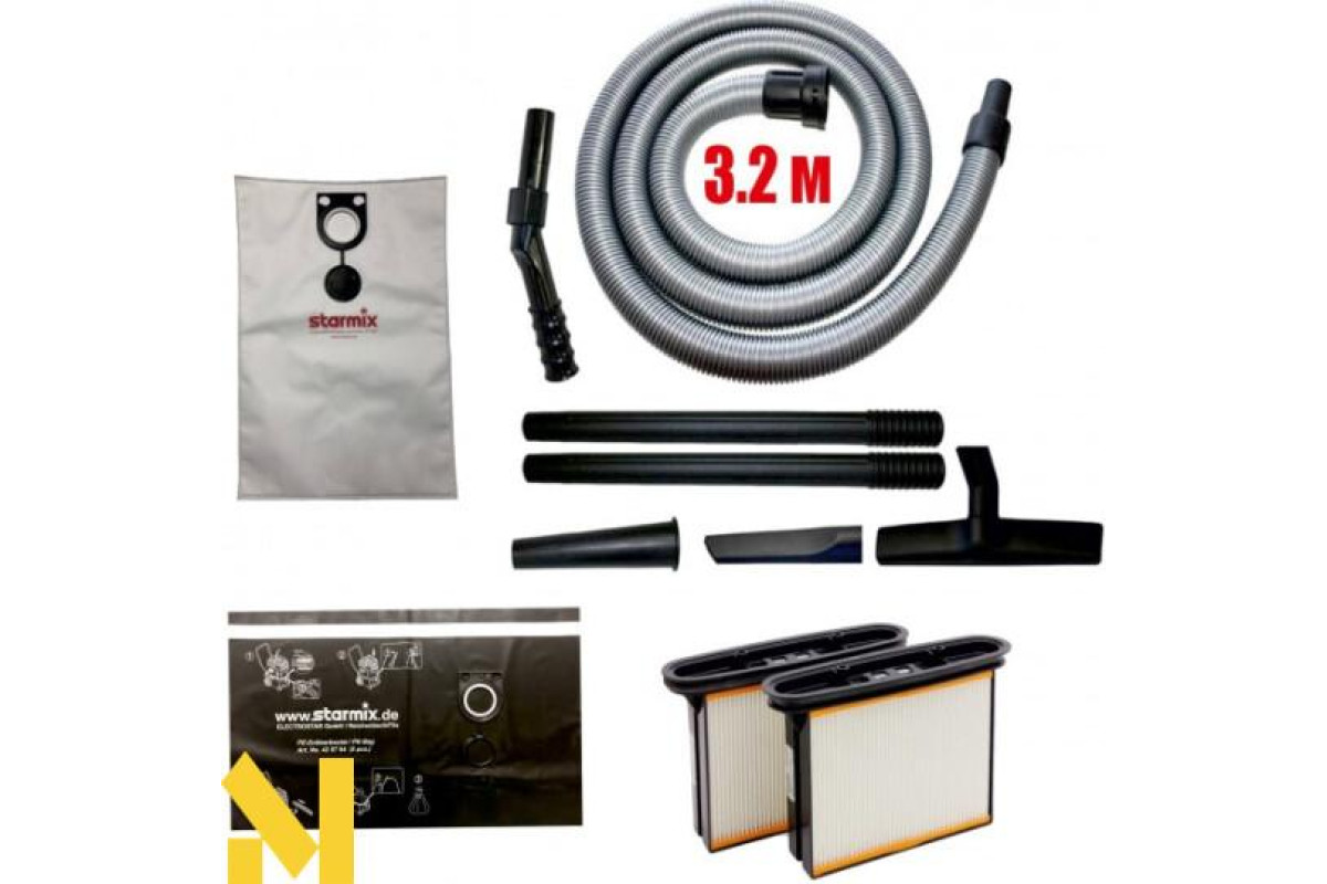 Будівельний пилосос Starmix ISC L-1425 Basic - це нова модель в лінійці професійних будівельних пилососів Starmix ISC. Даний апарат чудово впорається навіть з найскладнішими завданнями. Завдяки наявності розетки може працювати з електроінструментом і не вимагає використання мішків для збору пилу. Ідеально підходить для збору пилу, сухого сміття (залізна стружка, тирса, дрібні камені й т.д.). Також може використовуватися для збору води / рідкого бруду. Основною відмінністю від моделі ISC L-1625 TOP є більш економічний мотор (Потужність 1400 Вт). При меншому споживанні електрики, пилосос не сильно відрізняється силою всмоктування від дорожчої моделі та володіє відмінними характеристиками (розрідження 270 мбар, витрата повітря 73 л / сек). Ще однією відмінністю від версії L-1625 TOP є більш проста комплекція (шланг 3,2 м, Пластикові трубки та підлоги насадка з меншою робочою шириною). Дана модель є відмінним вибором, як для власників невеликих майстерень, так і для промислових підприємств.