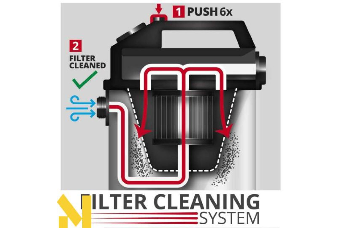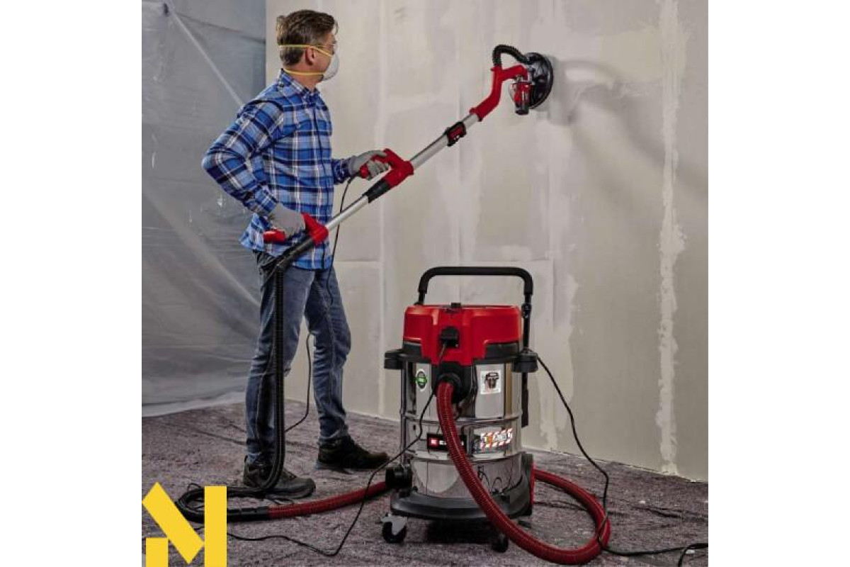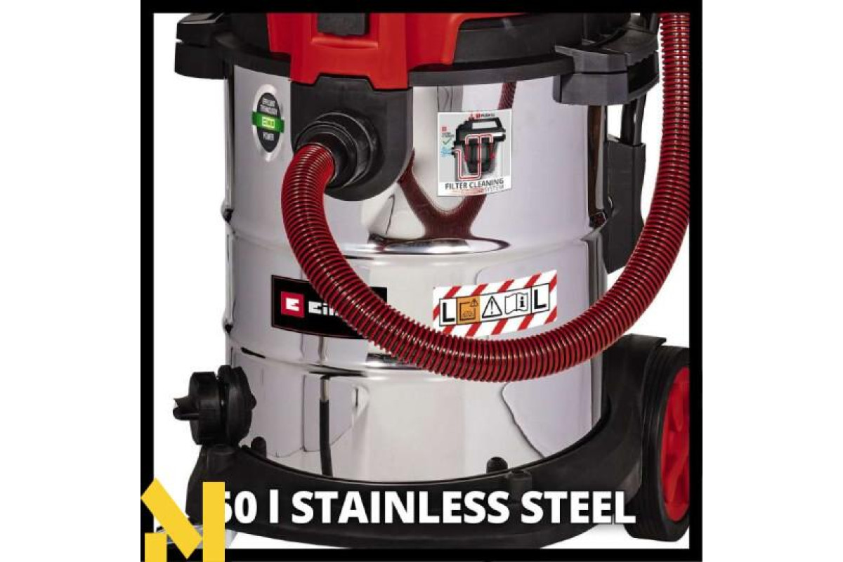 Вакуумний пилосос Einhell TE-VC 2350 SACL серії Expert є високоякісним універсальним багатоцільовим пилососом, він оснащений інноваційною системою очищення фільтра від дрібного пилу, яка ефективно справляється з грубим та ультра-дрібним пилом, класом пилу L відповідно до європейських норм (Небезпечний пил з гранично допустимою концетрацією > 1 мг/м³). Ви можете використовувати його для сухого та вологого прибирання (засмоктування рідини), а також для роботи разом з електроінструментом Einhell. 2-смугова система для відпрацьованого повітря та охолодження двигуна чистим повітрям знижує навантаження на двигун. Пилосос Einhell TE-VC 2350 SACL відмінно очищає будь-яку поверхню, крім того автоматично вимикається при всмоктуванні рідини завдяки поплавцевому вимикачу. Поролоновий (спінений) фільтр захищає двигун від забруднення під час всмоктування рідини. Для зручної та чистої утилізації всмоктуваних рідин є зливна горловина з кришкою. Пилосос Einhell TE-VC 2350 SACL має вбудовану розетку потужністю 1800 Вт (16А) для підключення електроінструменту з функцією автоматичного включення, як тільки підключений інструмент увімкнений та відключення пилососа із затримкою близько 5 сек. після того, як інструмент вимкнено, так що пил видаляється повністю. Під'єднавши шланг до адаптера повітродува, Ви можете очистити Ваші доріжки в саду від сторонніх предметів, здувши їх убік. Для зручності роботи та мобільності є ручка для перенесення, а також рукоятка та два великі колеса для перевезення.