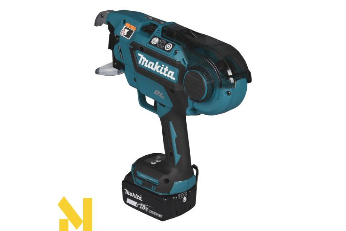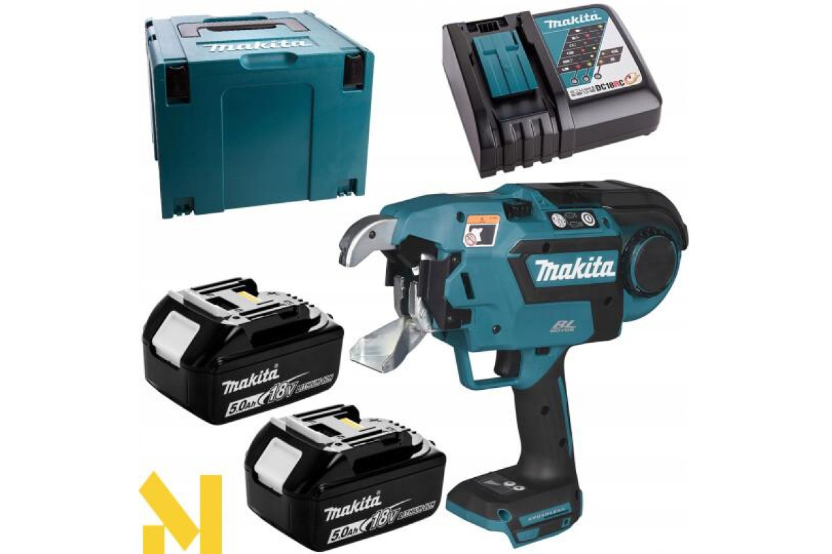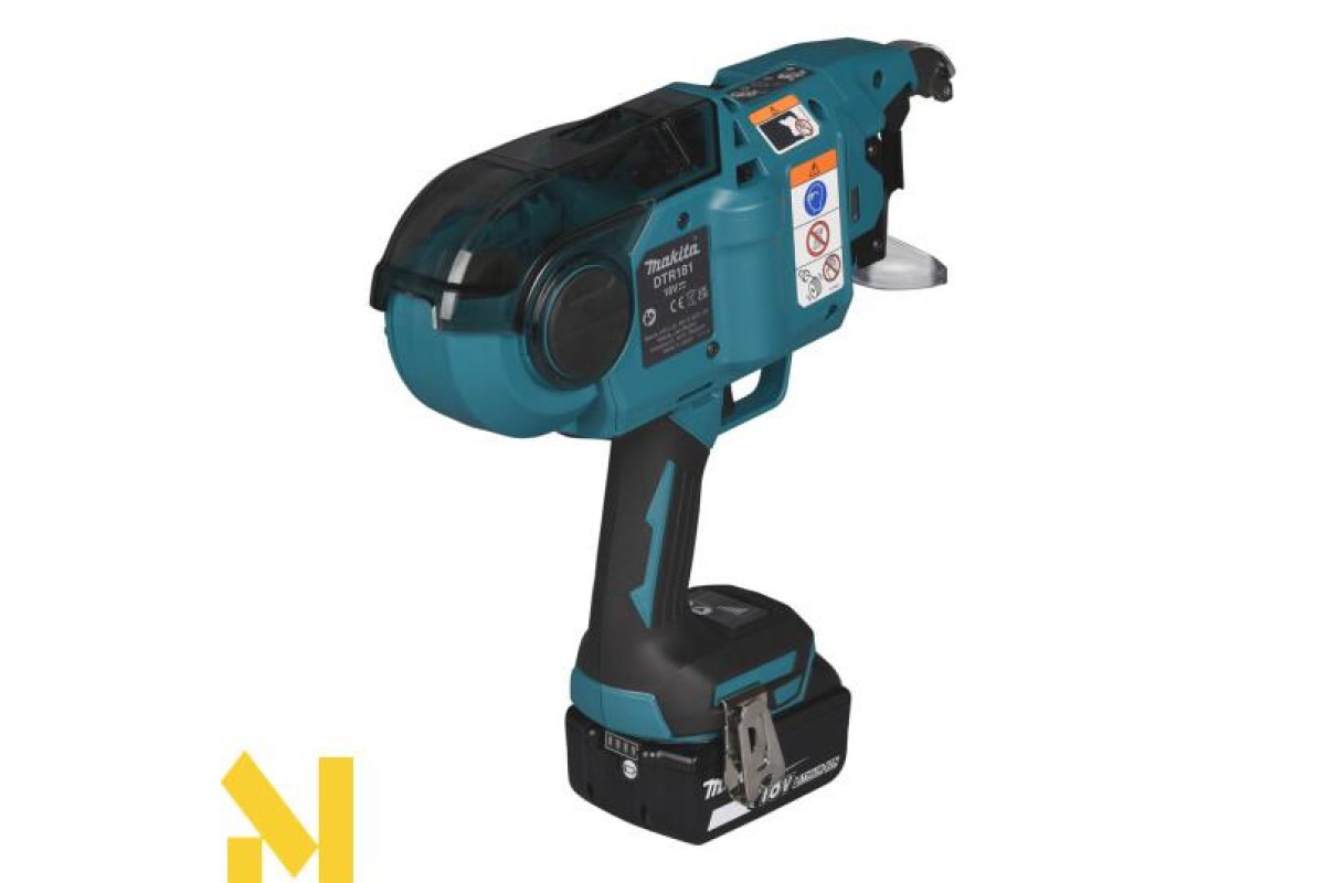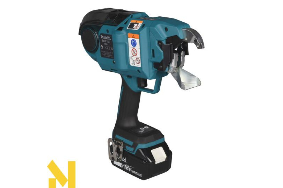 Машина для в'язання арматури LXT® 18 В з живленням від акумулятора, для в'язки, наприклад, арматурного стрижня Пристрій призначений для автоматичного в'язання арматурного стрижня, який використовується, наприклад, при зведенні бетонних фундаментів. Модель призначена для зв'язування дротів більшого діаметра, ніж у випадку з моделлю DTR180. Постачається в системному кейсі MAKPAC із 2 батареями BL1850B (18 В/5,0 А·год) та зарядним пристроєм DC18RC.