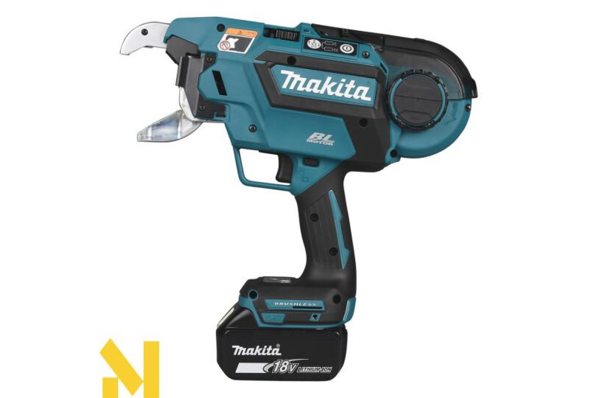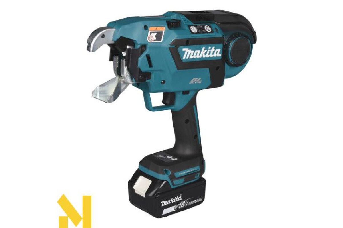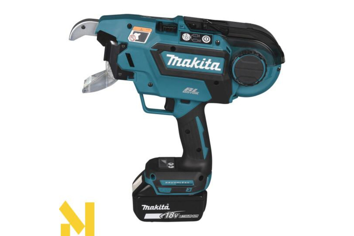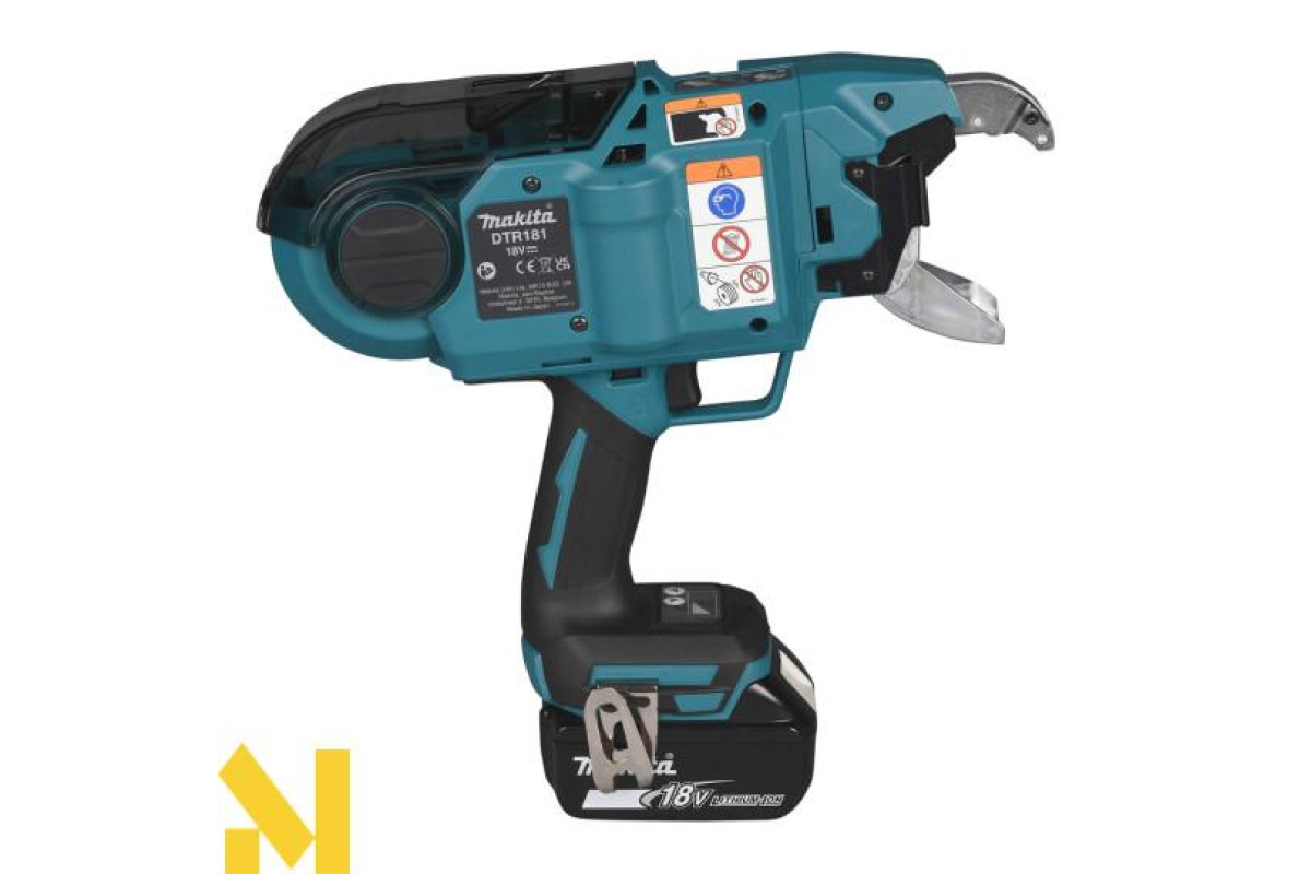 Машина для в'язання арматури LXT® 18 В з живленням від акумулятора, для в'язки, наприклад, арматурного стрижня Пристрій призначений для автоматичного в'язання арматурного стрижня, який використовується, наприклад, при зведенні бетонних фундаментів. Модель призначена для зв'язування дротів більшого діаметра, ніж у випадку з моделлю DTR180. Постачається в системному кейсі MAKPAC із 2 батареями BL1850B (18 В/5,0 А·год) та зарядним пристроєм DC18RC.