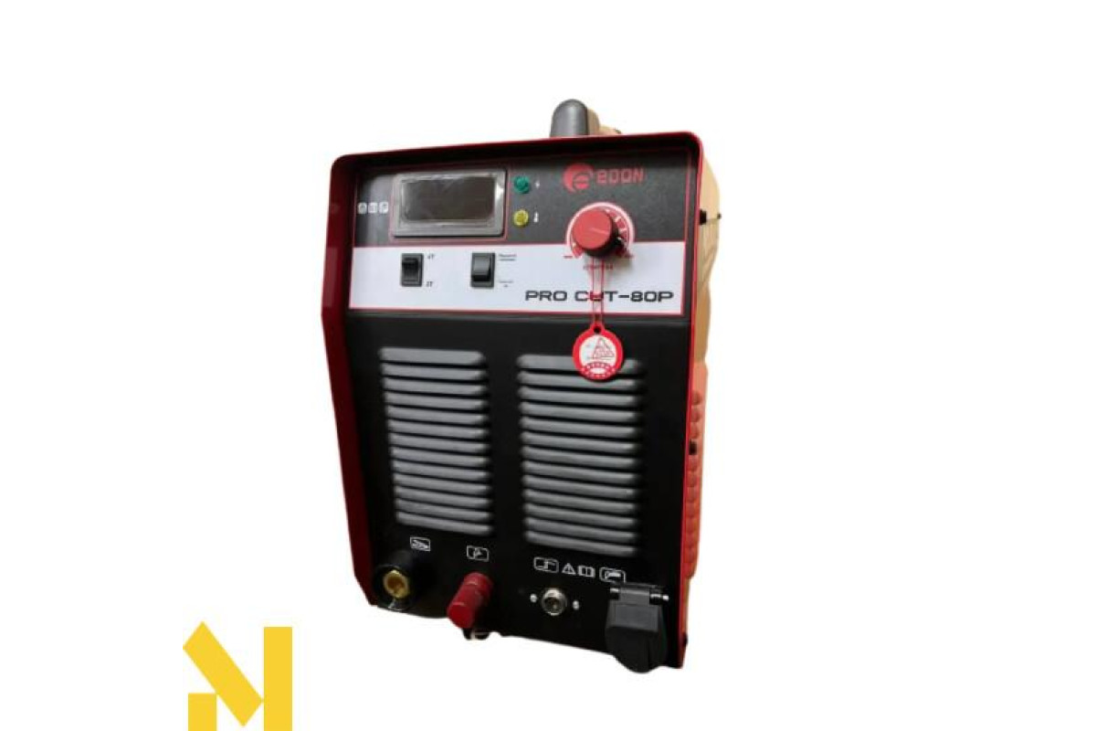 Плазморіз Edon працює від 3 фазної мережі 380 В, маючи стабілізацію вхідної напруги. Система повітряного охолодження не допускає перегрівання за тривалого вмикання, що становить 80%. Зварювальний струм плавно регулюється в діапазоні від 10 до 80 амперів, у парі з повітряним компресором доброї потужності глибина різання становитиме 30 мм. Функція 2T і 4T є. Цифрова індикація в реальному часі показує точну кількість Амперів, тому всі параметри під певну товщину та забруднення металу легко настроювані.