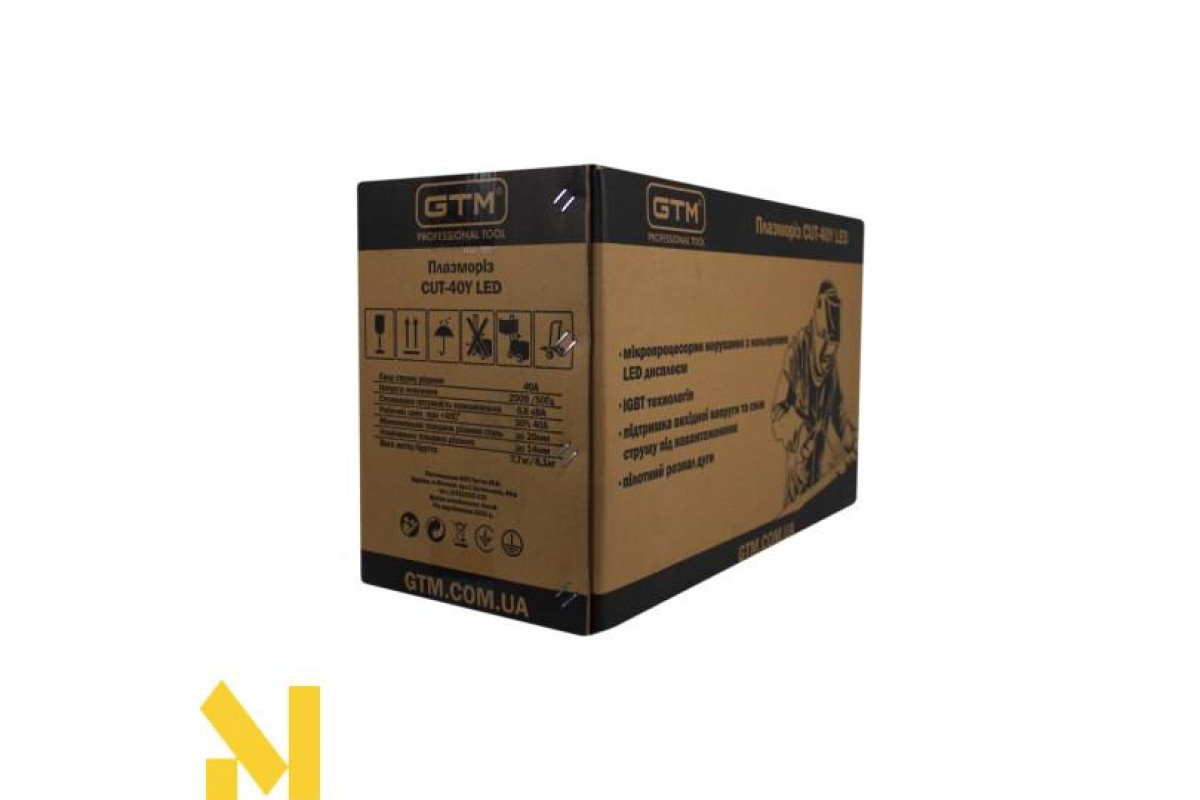 GTM CUT-40Y LED - інверторна установка для повітряно-плазмового різання різних конструкційних матеріалів: сталь, мідь, алюміній, чавун і т.д. Апарат для плазмового різання CUT-40Y LED генерує плазму за допомогою повітря, що проходить через спеціальний блок підготовки. Температура в місці різу досягає 15000 С, що дозволяє з легкістю різати найтвердіші метали.