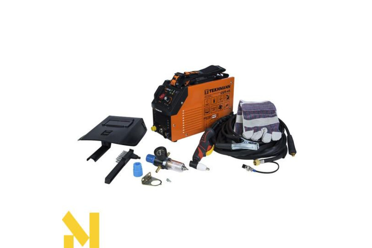 Кабель з робочим затискачем (2,0 м), рукав плазмового пальника (плазмотрона) (5,0 м), плазмотрон, маска зварювальника, повітряний фільтр-регулятор з манометром, повітряний шланг та молоток-щітка в комплекті