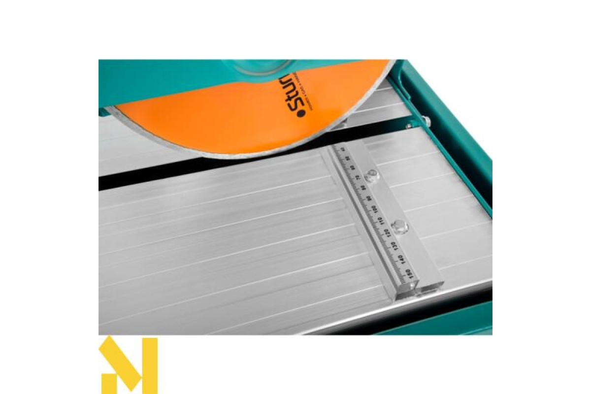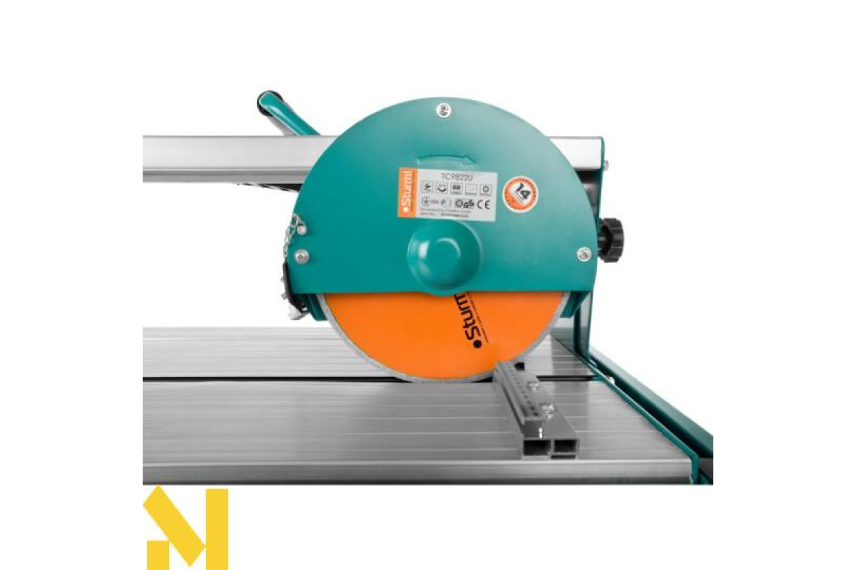 Плиткорез Sturm TC9822U - призначений для інтенсивної експлуатації в умовах професійного будівництва інструмент для різання облицювальної, тратуарной і плитки для підлоги. З його допомогою можна різати плитку товщиною до 48 мм і довжиною різу 920 мм, що відрізняє його від аналогічних моделей. Водяне охолодження диска діаметром 230 мм і верхній двигун потужністю 1200 Вт, встановлений на плиткоріз Sturm TC9822U, дозволяють ефективну експлуатацію інструменту. Хромований стіл розміром 1170х394 мм дає можливість розпилювати плитку як під кутом 90 градусів, так і різати її під довільним кутом в діапазоні від 0 до 45 градусів. Для більш точного різу верстат оснащений алюмінієвим упором. Захисний кожух плиткореза Sturm TC9822U оберігає користувача від попадання пилу і дрібних частинок.