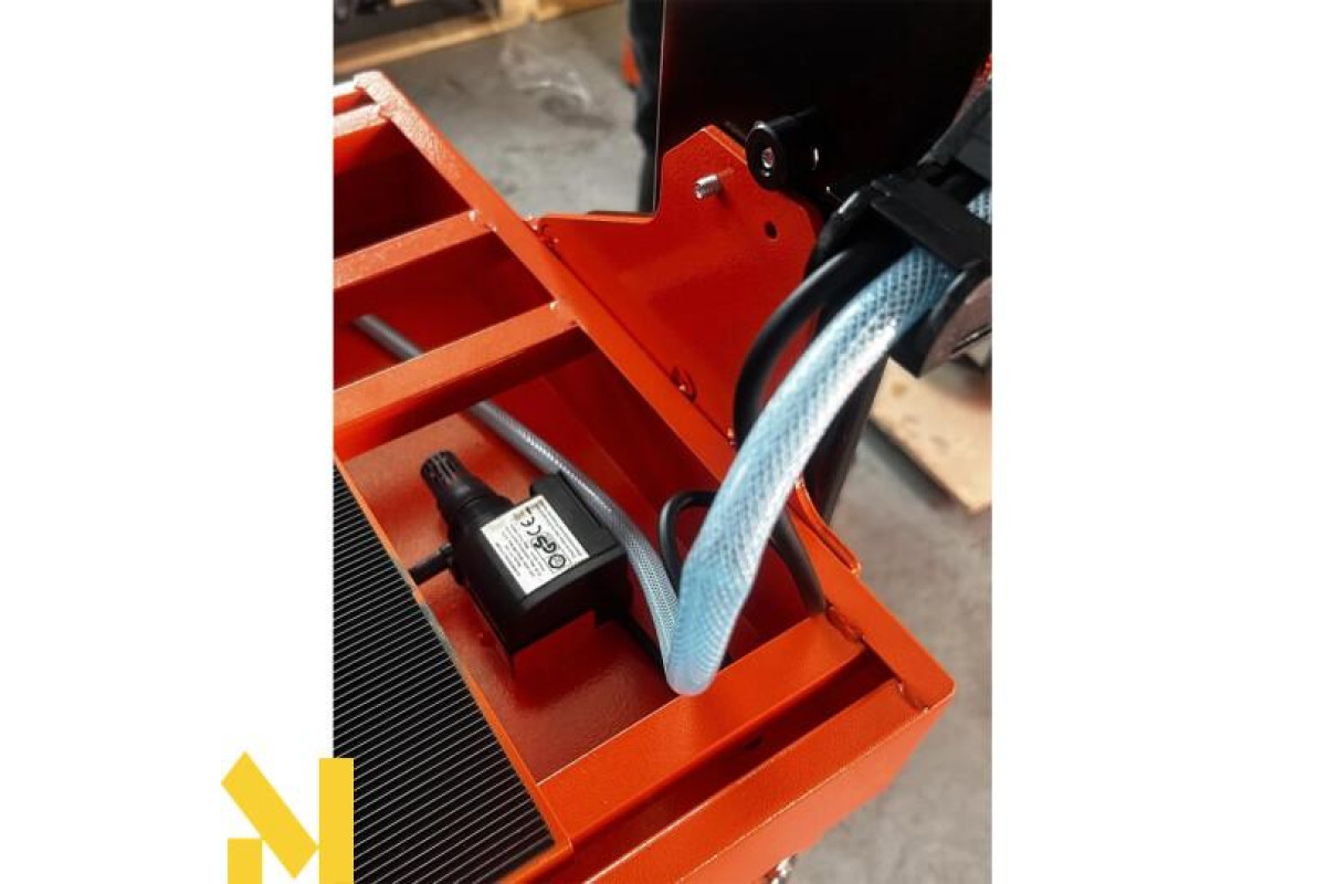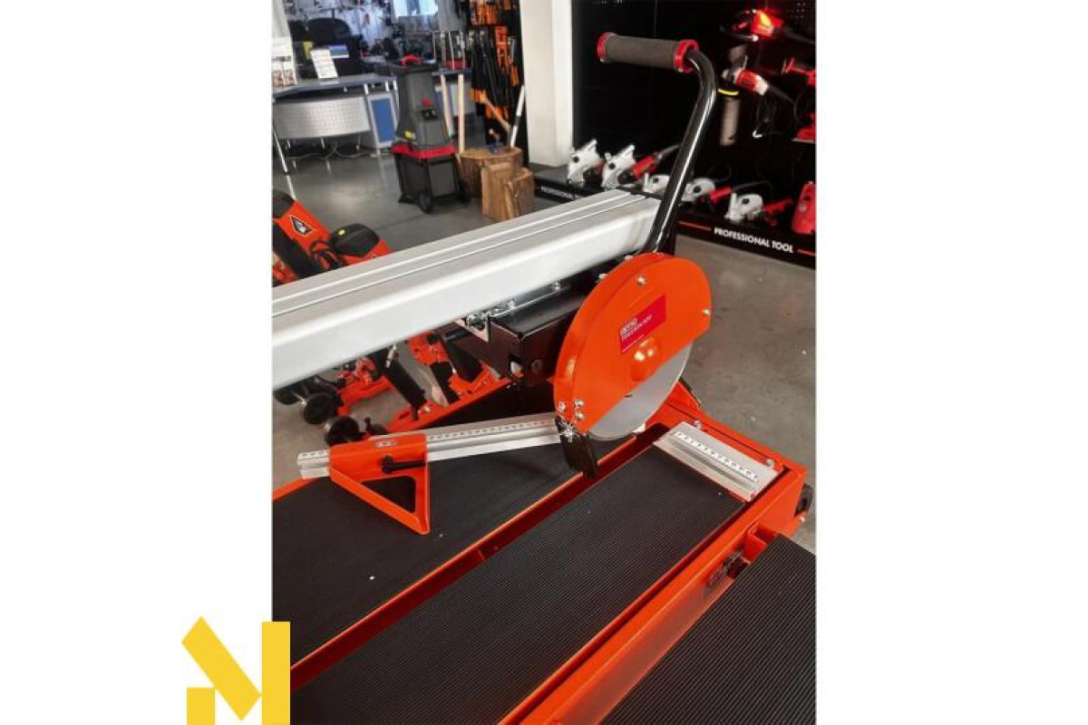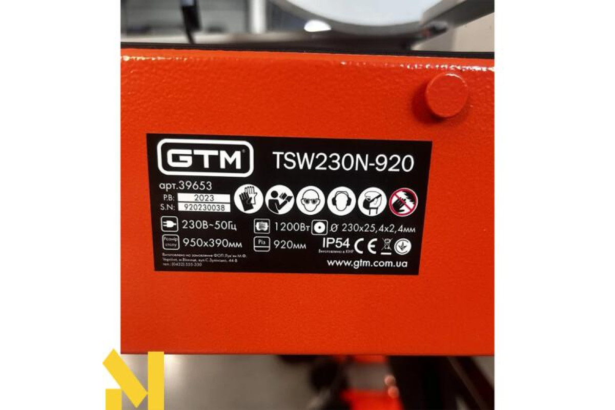 GTM TSW230N-920 - професійний електричний верстат для різання плитки, черепиці, каменю або будівельних блоків довжиною до 920 мм. Підходить для роботи з керамікою, мармуром, гранітом, базальтом, штучним каменем, бетоном і газобетоном. Завдяки водяному охолодженню ріжучої кромки диска, забезпечується якісний і рівний різ, що особливо важливо під час обробки керамічної та керамогранітної плитки.
