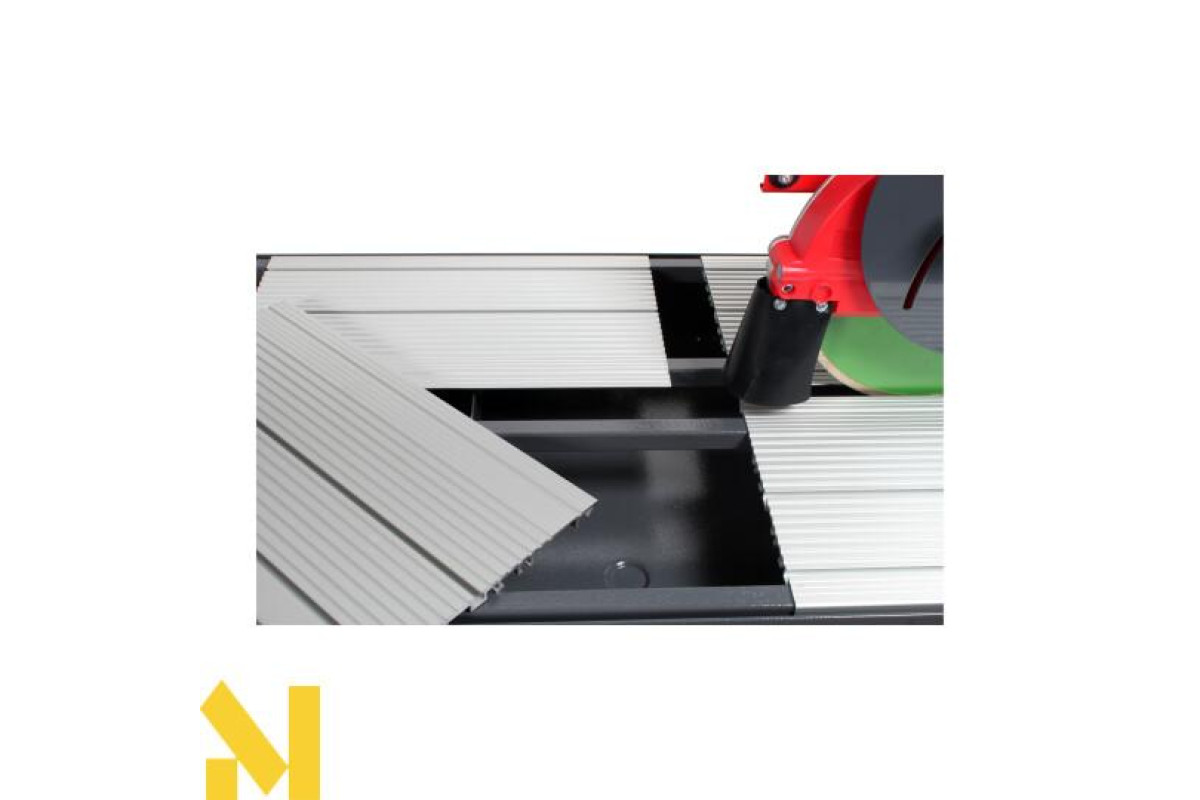 Ріжучий блок рухається по напрямній на підшипниках, що забезпечує максимальну плавність ходу, точність і якість різу. При нахилі стійок можливо зрізати фаску на плитці довжиною до 106см.