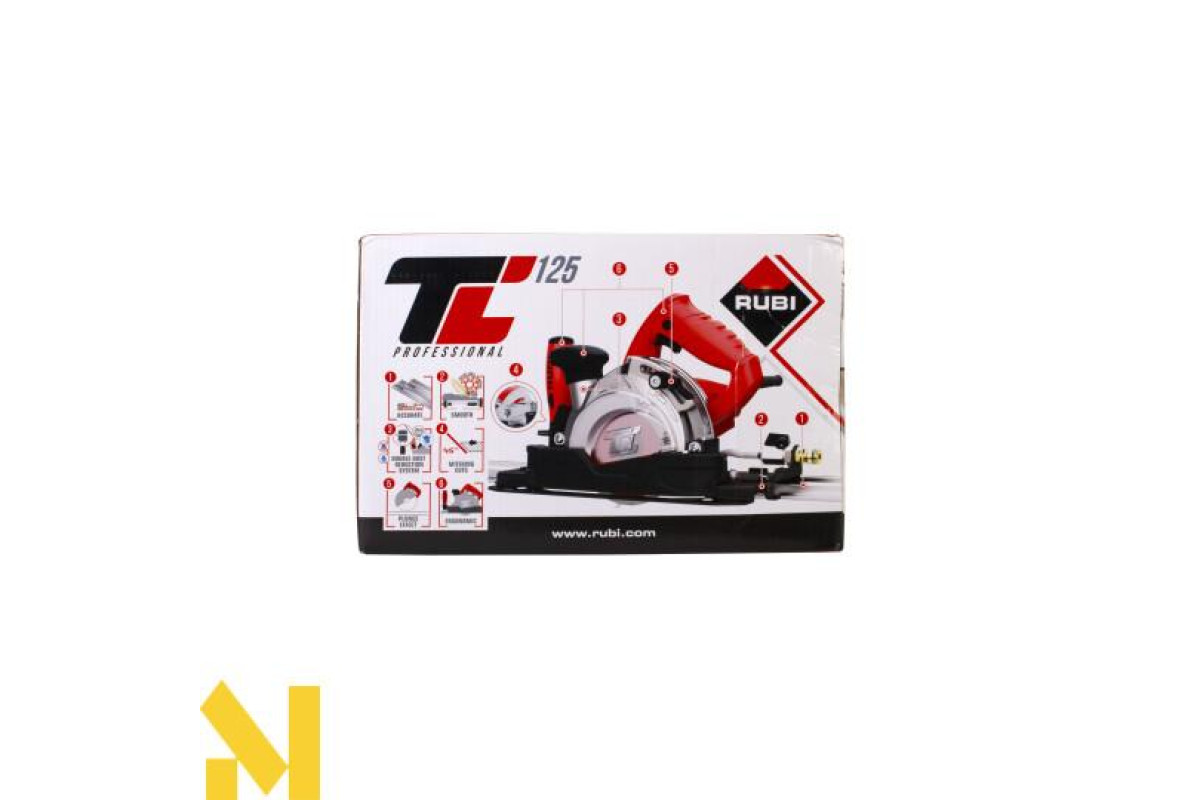 RUBI TC-125 має подвійну систему зменшення та контролю пилу, що утворюється під час різання. Вхід до пилососа 32 мм, але в комплекті є перехідник для інших діаметрів. Забір води здійснюється через 16 мм роз'єм. Під час мокрого різання вхід до пилососа покривається гумовою пробкою, яка служить додатковою ручкою.