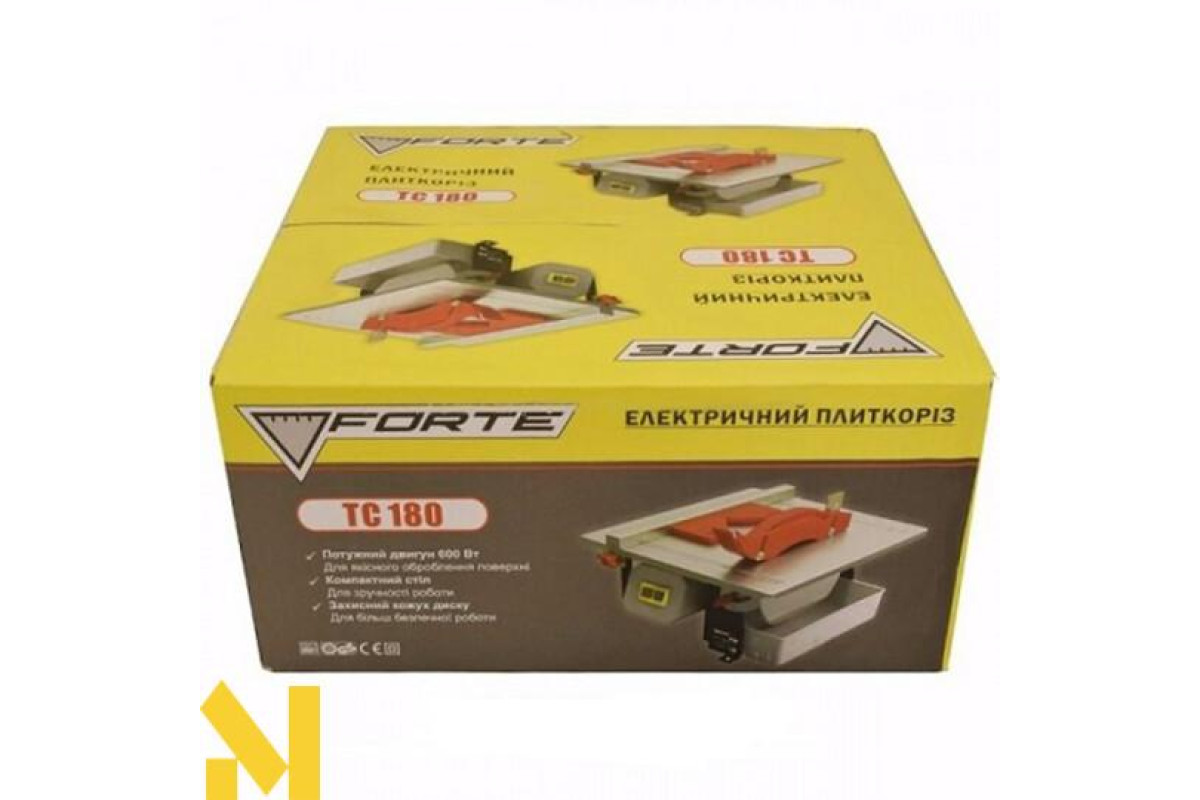 Forte TC 180 - плиткоріз для роботи з керамічною плиткою, а також можна використовувати за допомогою пиляльних кіл дерев'яних, і алюмінієвих заготовок не великої товщини. В основному використовується для побутових цілей, або домашніми майстрами.