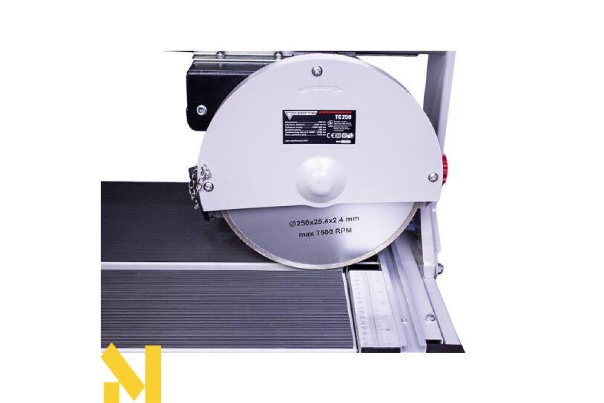 Додатково плиткорез Forte TC 250 обладнаний транспортувальними колесами, за рахунок чого забезпечується його мобільність, а розмір столу 160х468 мм дозволяє проводити різання матеріалу, довжиною 1020 мм.