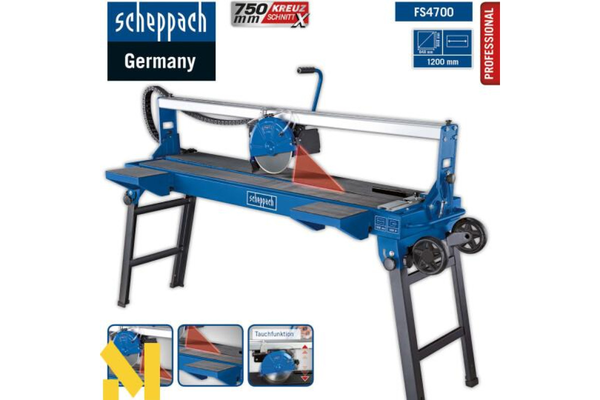 Промисловий потужний плиткоріз створений для обробки великої керамічної, теракотової, сланцевої, мармурової, порцелянової плитки.