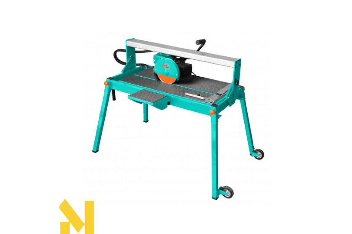Сталевий стіл з гумовими накладками розміром 1060х468 мм дає можливість розпилювати плитку як під кутом 90 градусів, так і різати її під довільним кутом в діапазоні від 0 до 45 градусів.