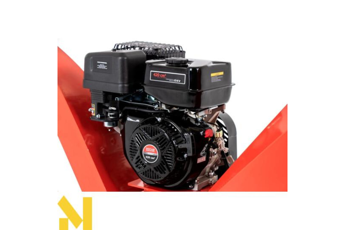 Наш подрібнювач оснащений двигуном Ducar об'ємом 420 см3 та номінальною потужністю 9 кВт, що гарантує не лише швидку та ефективну роботу, а й довгий термін служби пристрою. Завдяки цьому ви можете бути впевнені, що ваш подрібнювач прослужить вам довгі роки. Максимальний діаметр гілки до 12 см не є проблемою нашого подрібнювача. Ріжучий механізм барабана і верхній викид тирси забезпечують ретельне подрібнення та безпечне видалення залишків гілок. Завдяки цьому ви зможете легко позбутися садових відходів, а заразом використовувати їх для добрива рослин у своєму саду.