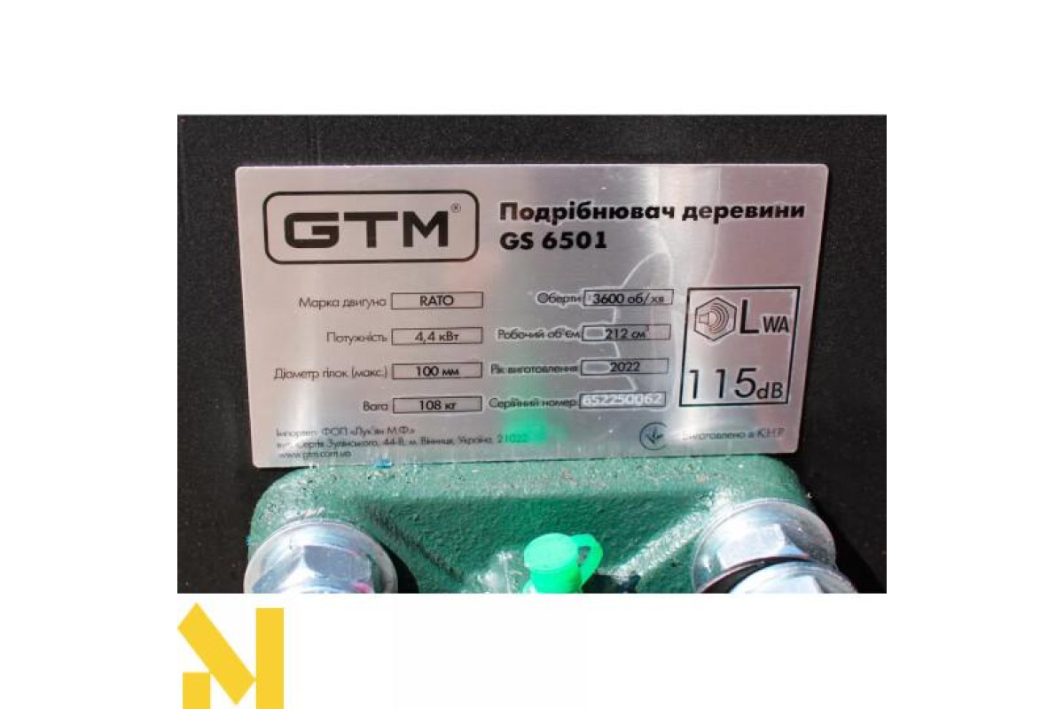 GTM GS6501 - високоефективний побутовий подрібнювач гілок, призначений для роботи зі свіжою та сухою деревиною. Ножі в рух наводить бензиновий двигун Rato з потужністю 6,5 л. Ріжучий барабан діє як додаткова система втягування гілок, завдяки чому швидкість подрібнення сягає 10 м/хв. Максимальна товщина свіжих гілок під час роботи становить 100 мм. Різальні ножі двосторонні, завдяки чому значно збільшується термін служби. Подрібнювач комплектується колесами для транспортування.