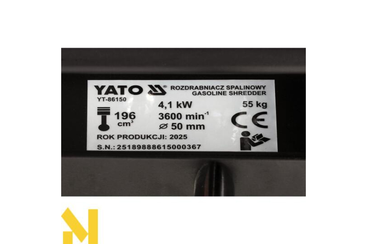 Бензиновий подрібнювач YT-86150 — це спеціалізований пристрій, розроблений для вимогливих користувачів — як досвідчених садівників, так і професійних компаній, що займаються доглядом за зеленими насадженнями. Завдяки міцній конструкції, потужному 4-тактному двигуну Loncin об'ємом 196 см³ і потужністю 5,44 к.с., а також барабанній системі різання, він ефективно справляється з гілками діаметром до 50 мм, кущами та рослинними відходами, забезпечуючи швидке й ефективне подрібнення.