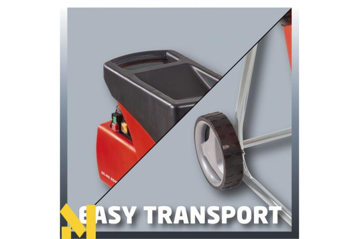 Садовий подрібнювач Einhell GC-RS 2540 компактне і продуктивне пристрій, призначений для подрібнення садового сміття (зрізані гілки, опале листя, мох, трава і т.д.) Заводська збірка від німецької компанії-виробника Einhell. Відрізняється традиційним німецькою якістю, тому користується особливою популярністю серед користувачів. Завдяки високій потужності, укладеної в надміцному корпусі, він здатний з легкістю впоратися з подрібненням деревини різних порід. Подрібнювач для садового сміття Einhell GC-RS 2540 не боїться ніяких механічних навантажень. Він зручний в транспортуванні, компактний і мобільний, що полегшує завдання зберігання пристрою в неробочий період. Маючи в своєму арсеналі такий шредер, ви зможете швидко і якісно проводити прибирання своєї ділянки, викликаючи заздрісні погляди сусідів по дачі. Мобільність обмежена мережевим кабелем, тому рекомендується працювати на прибудинкових ділянках. Незважаючи на те, що для запуску двигуна подрібнювача необхідна наявність електричного струму, агрегат є досить зручним в експлуатації.