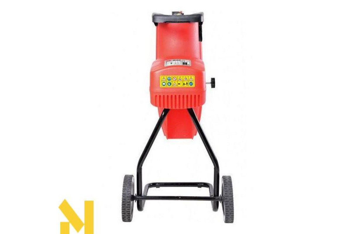 - подрібнювач важить не багато, всього 23,5 кг. Його легко доставити на місце зберігання і пересувати по саду за допомогою великих коліс, які легко долають пересічену місцевість;