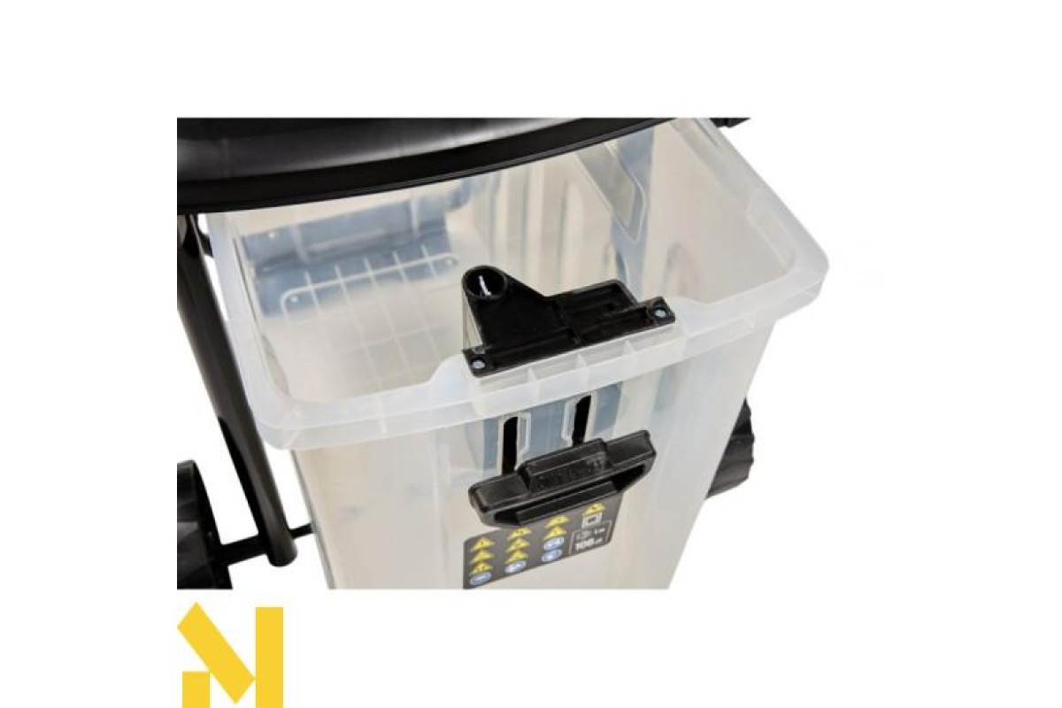 Великий вбудованийкошик із міцного пластикуне тільки стійкий до деформацій, але й ідеально підходить для транспортування подрібненого матеріалу.