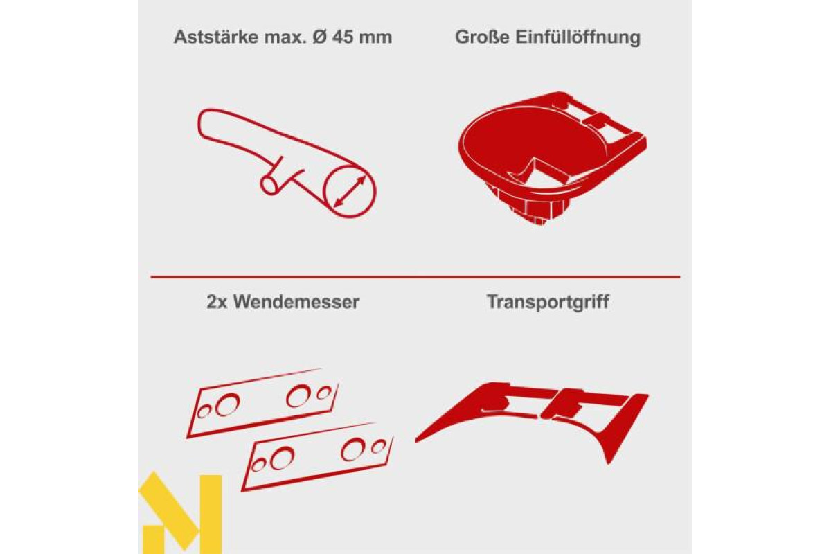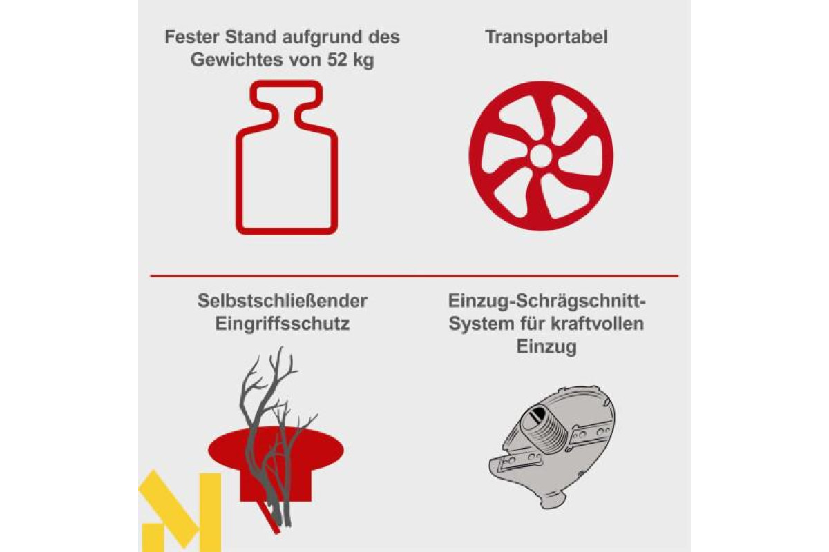 Індукційний двигун потужністю 3500 Вт забезпечує безперервну потужність. Biostar 3000 подрібнює 120 кг гілок максимальним діаметром 45 мм або 150 кг хмизу за одну годину, так швидко, що не потрібно чекати на заправку. Кожен, хто цінує ефективність, по-справжньому оцінить Biostar 3000. Завантажувальний отвір 120 x 155 мм оснащений самозакриваючимся захисним кожухом. Великий розвантажувальний отвір 385 x 60 мм швидко викидає подрібнений матеріал з машини.