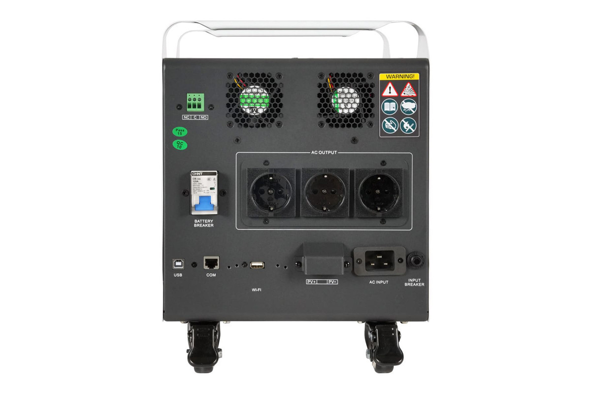 Сучасний багатофункційний пристрій поєднує в собі акумуляторну батарею, сонячний інвертор із можливістю підключеня сонячних панелей та систему безперебійного живлення з чистою синусоїдою.