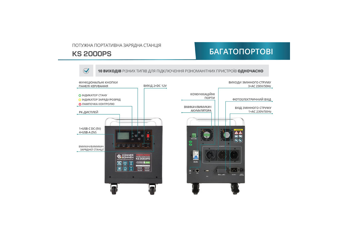 Особливості електростанції портативної Konner&Sohnen KS 2000PS