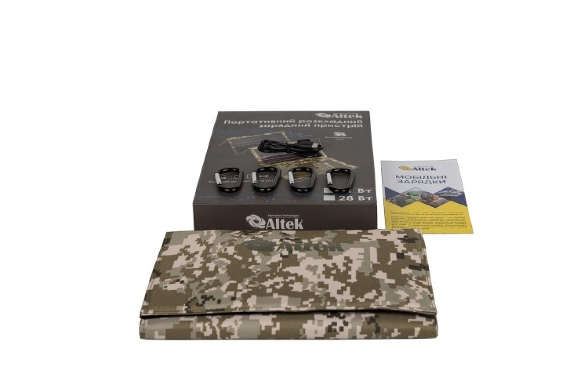 Монокристалічна сонячна панель ALTEK ALT-28 потужністю 28Вт з трьома виходами USB є оптимальним варіантом для мандрівників, рибалок, мисливців і всіх кому важливо мінімальна вага та компактні розміри при максимальній ефективності. За допомогою даної панелі можна заряджати павербанки, смартфони, смарт годинники, без дротові навушники та інші малопотужні пристрої. Панель дуже компакта та легка, без проблем можна покласти її у внутрішню кишеню рюкзака, кофр мотоцикла і навіть в розкладеному стані не займе багато місця в надувному човні.