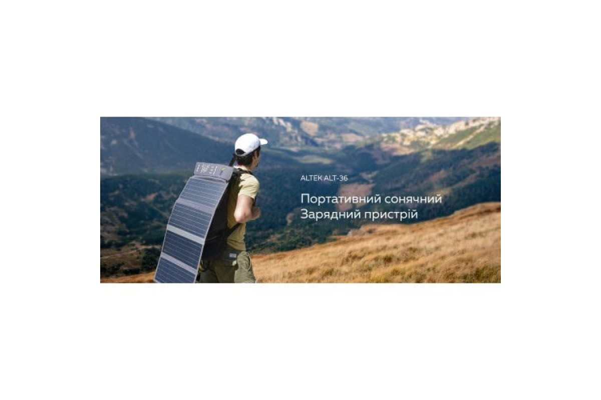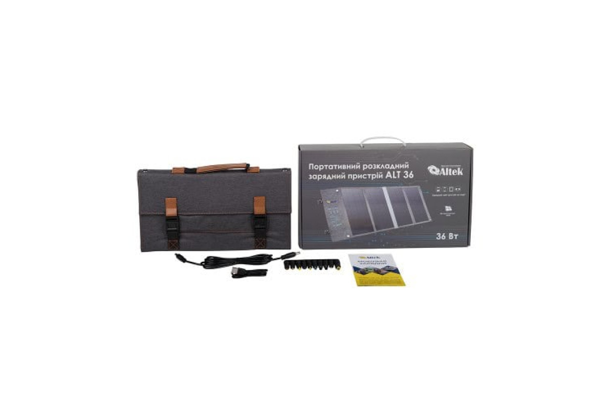 Портативний розкладний пристрій ALT – 36 оснащений USB з двома портами що, дає можливість підключити його для заряду багатьох пристроїв, включаючи мобільний телефон, планшет, павербанк, ноутбук, камера, рація тощо. Інтелектуальна технологія Smart Power+ дозволяє оптимально зарядити пристрої з максимальною ефективністю