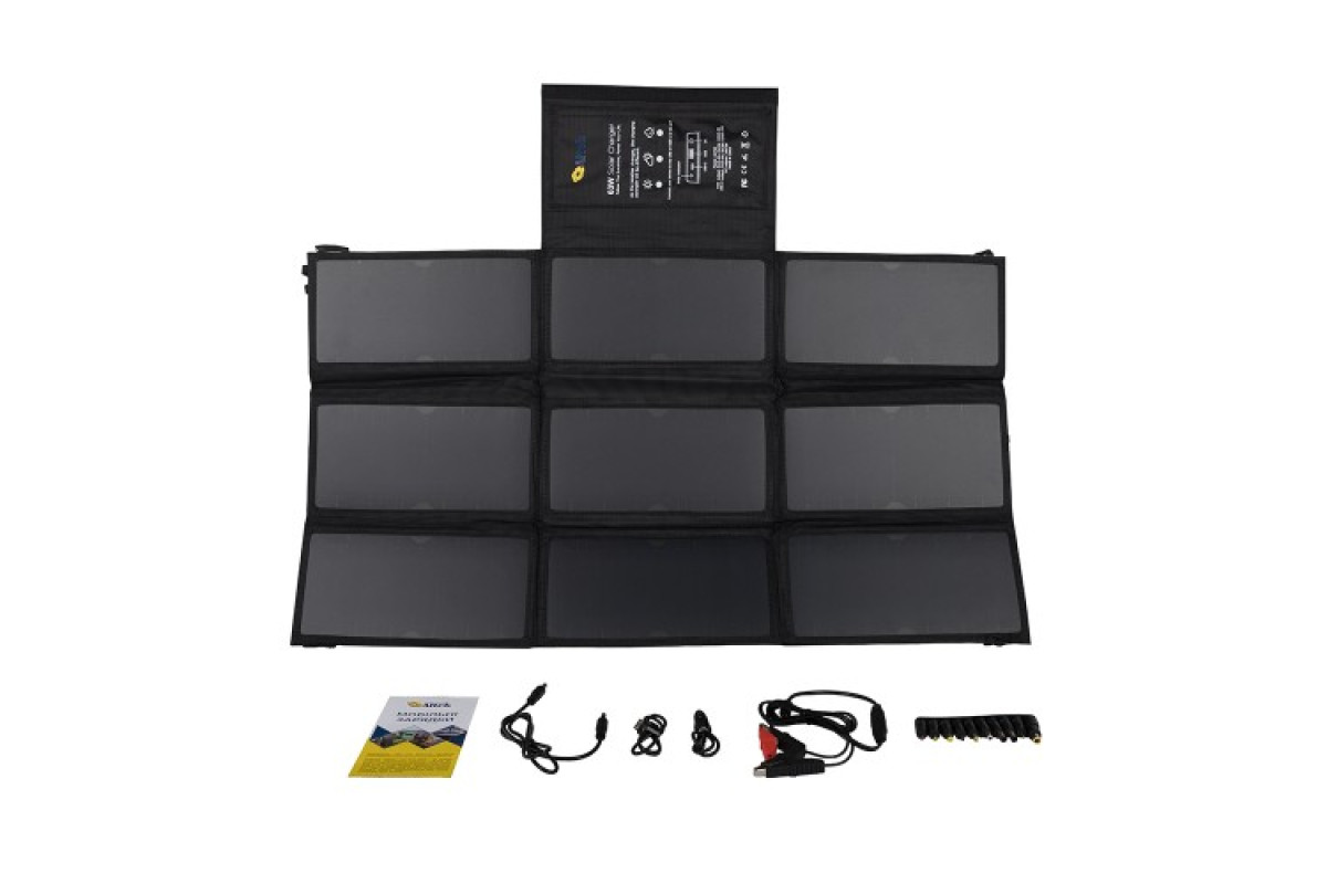 Мобільна сонячна панель ALT-63 зможе швидко зарядити ваші пристрої завдяки технології швидкої зарядки (Power Delivery) від роз’ємів USB-С: 5В-3A  та DC: 19В-3А, при цьому зможе заряджати і інші пристрої котрі підключені до панелі.