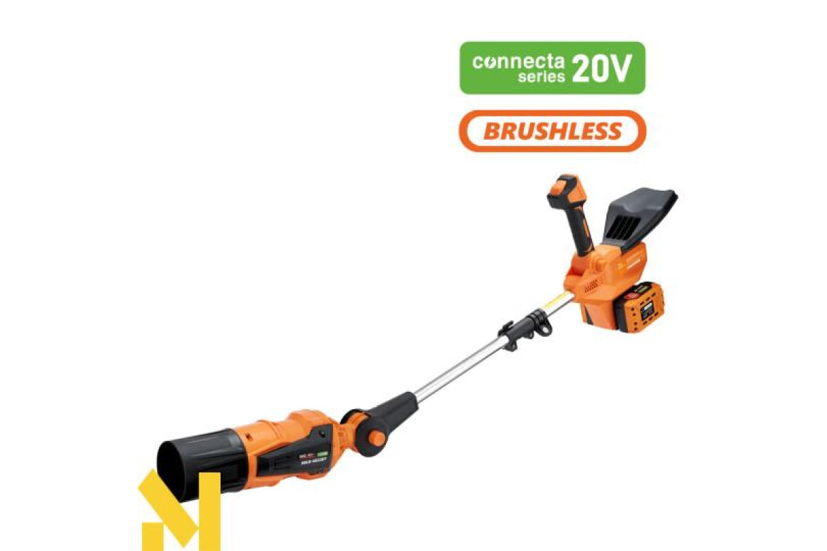 Акумуляторна повітродувка SEQUOIA SBLB4022BT-E2W лінійки Connecta Series 20V оснащена потужним безщітковим двигуном і працює від двох акумуляторів 20V (разом 40V), забезпечуючи стабільну продуктивність та тривалий час роботи без втрати потужності.