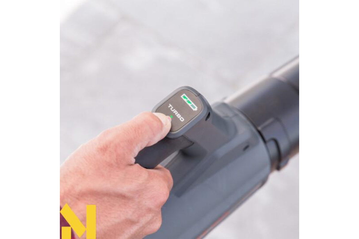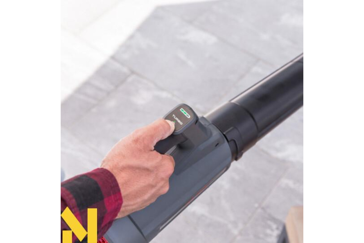 В основі повітродувки лежить компактний і сильний електричний двигун безщіткової конструкції. Для таких агрегатів характерний підвищений робочий ресурс. Вони не потребують обслуговування весь термін служби. Осьовий вентилятор створює потужний повітряний потік. Спеціальним перемикачем зручно регулювати об'єм і швидкість повітря, що подається, вибираючи між режимом економії і режимом підвищеної потужності. Корпус приладу виготовлено з ударостійкого пластику. Усі органи управління машиною зручно розташовані під рукою оператора. Живлення електрообладнання отримує від сучасного літій-іонного акумулятора (до комплекту не входить), здатного повністю заряджатися за кілька годин. Рівень заряду батареї вкаже вбудований у його корпус індикатор. До додаткових плюсів повітродувки відносять невелику вагу, наявність наплічного ременя, високу продуктивність.