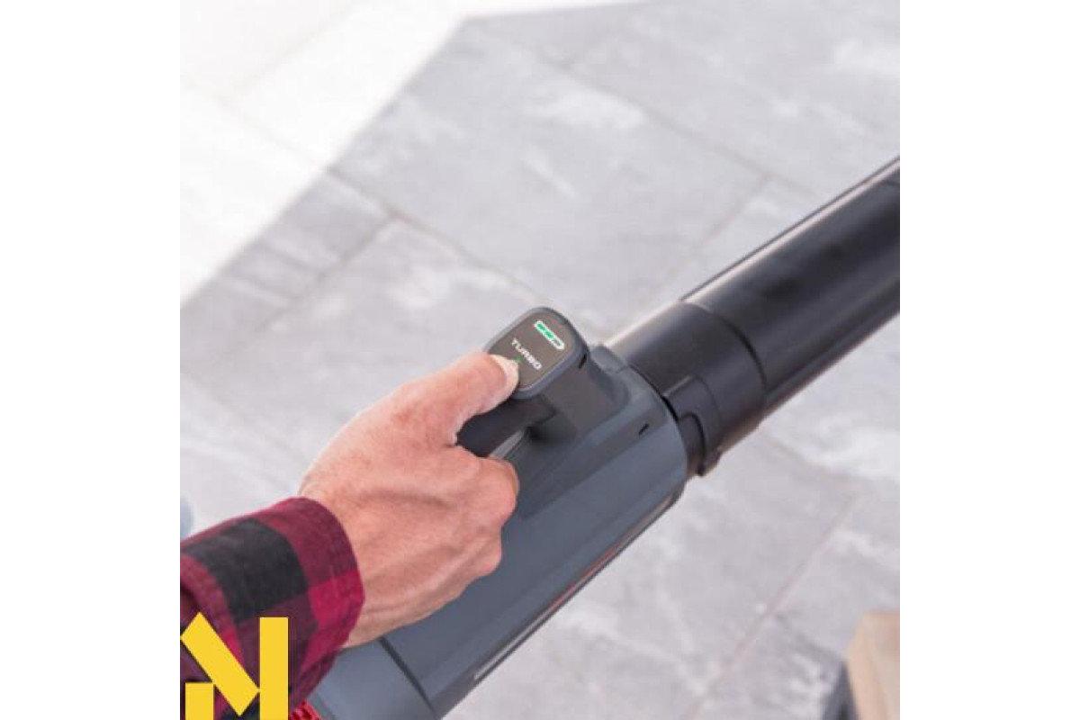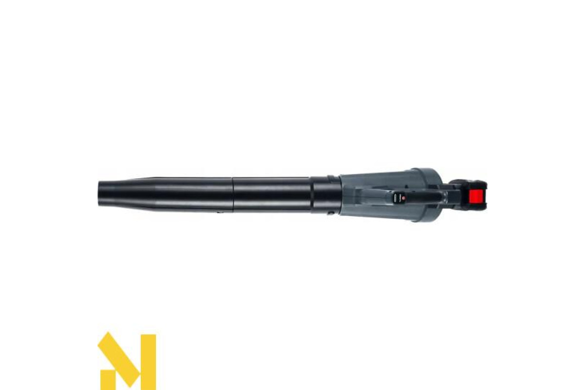 В основі повітродувки лежить компактний та сильний електричний двигун безщіткової конструкції. Для таких агрегатів характерний підвищений робочий ресурс. Вони не вимагають обслуговування весь термін служби. Осьовий вентилятор створюємо потужний повітряний потік. Спеціальним перемикачем зручно регулювати об'єм і швидкість повітря, що подається, вибираючи між режимом економії і режимом підвищеної потужності. Корпус приладу виготовлений з міцного пластику. Усі органи керування машиною зручно розташовані під рукою оператора. Живлення електрообладнання отримує від сучасного літій-іонного акумулятора (у комплект не входить), здатного повністю заряджатися за кілька годин. Рівень заряду батареї вкаже вбудований у корпус індикатор. До додаткових плюсів повітродувки відносять невелику вагу, наявність наплічного ременя, високу продуктивність.