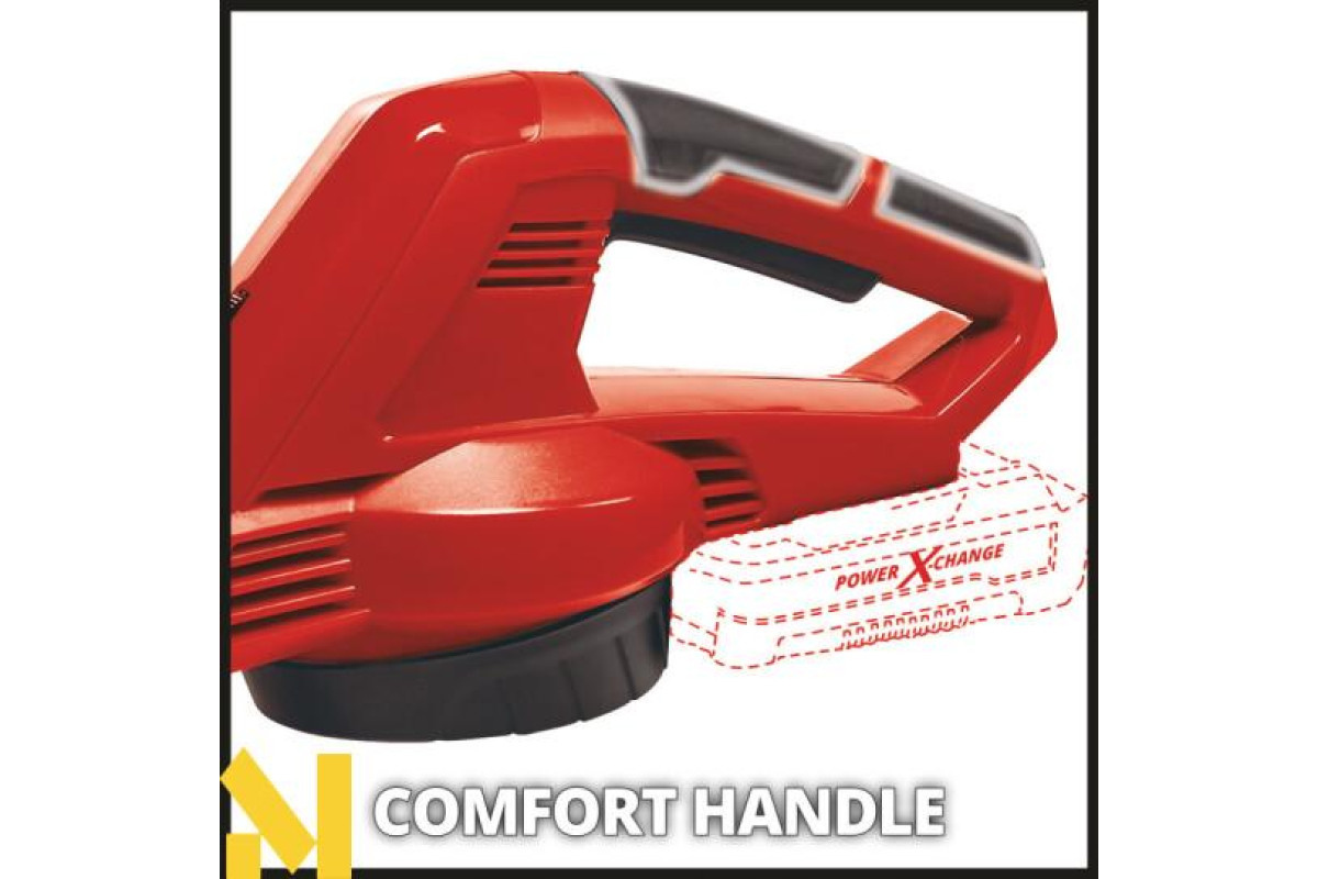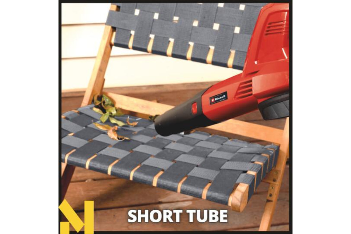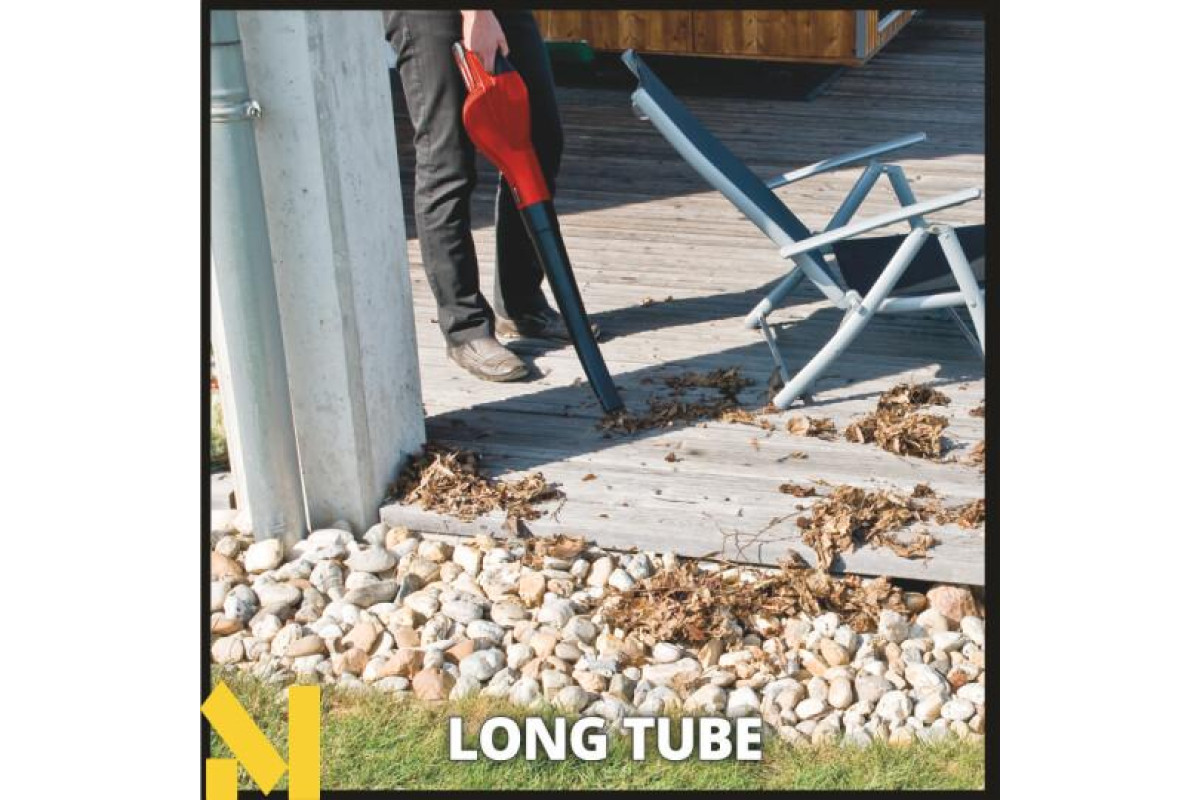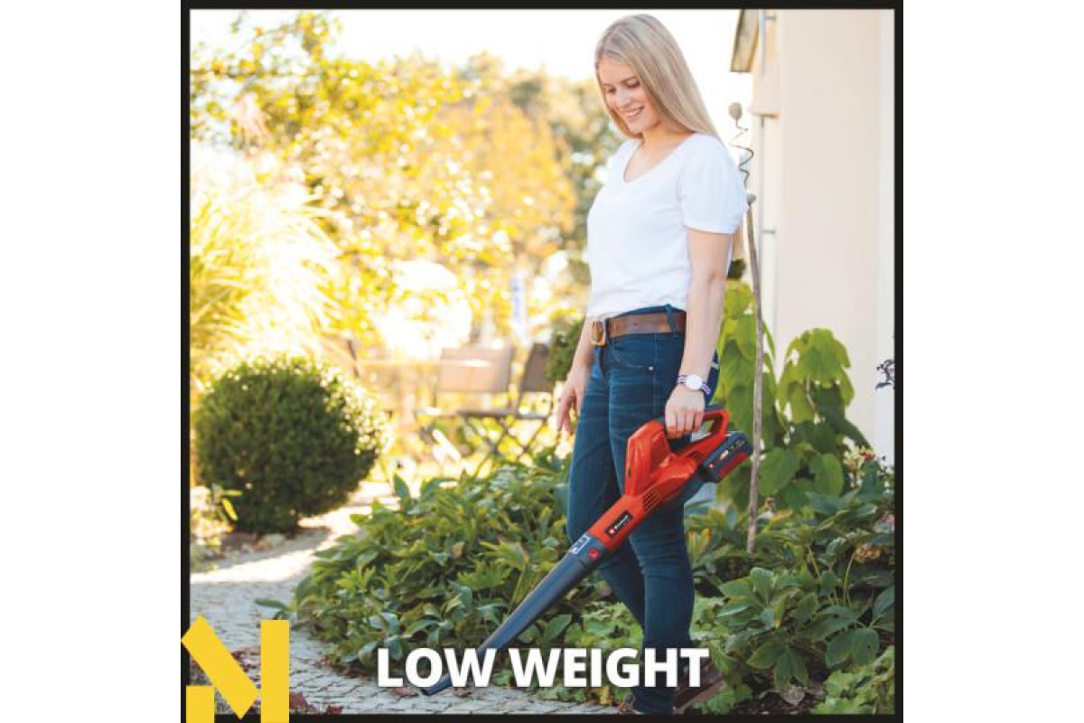Акумуляторна повітродувка Einhell GE-CL 18/1 Li E-Solo ідеально підходить для здування листя, сміття з трави та інших забруднень з дворів, проїздів, пішохідних доріжок, гаражів, терас і зовнішніх меблів. Зручний розмір і мала вага дозволяють дуже зручно і просто виконувати роботу. У комплекті можна використовувати довгі і короткі насадки, в залежності від того, що зручніше. Завдяки знімній трубці вентилятор також економить простір. Електронне керування швидкістю дозволяє змінювати швидкість повітря відповідно до необхідних роботами. Рукоятка з м'якими накладками забезпечує додатковий комфорт під час використання. У комплект повітродувки не входдять АКБ і зарядний пристрій, який ви купуєте окремо.