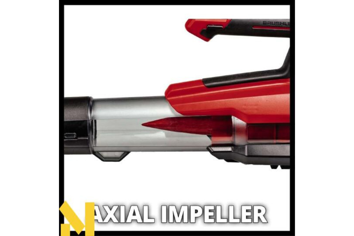 Завдяки електронному управлінню швидкістю потужність видування може бути точно дозована відповідно до вимог. Акумуляторна повітродувка Einhell GP-LB 18/200 Li GK - Solo забезпечує відмінні результати видування завдяки безщітковому двигуну Einhell. Для тих місць, де інструмент особливо інтенсивно використовується, є перемикач турбо для максимальної потужності дуття.